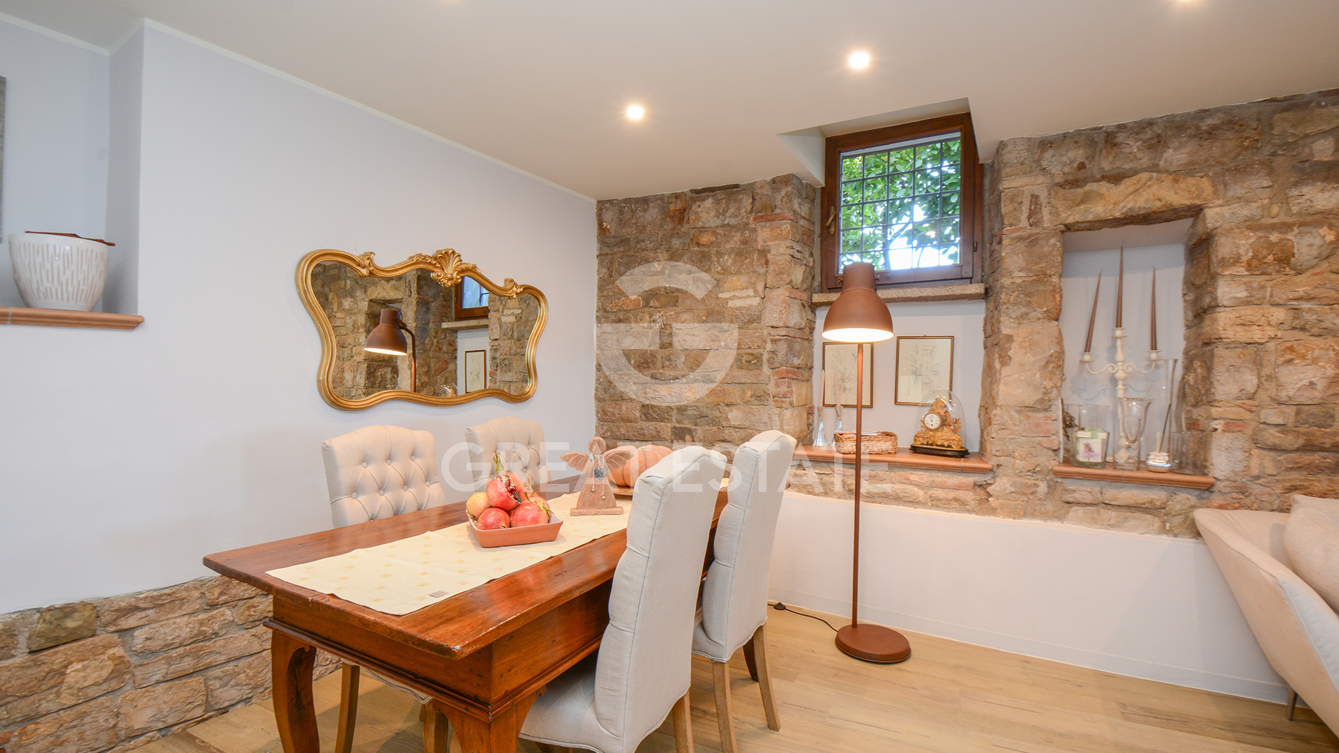 Spanning approximately 210 sqm, the property unfolds across three levels, offering bright, welcoming spaces meticulously restored with high-quality materials: terracotta floors, exposed wooden beam ceilings, expertly preserved stone walls and carefully crafted details throughout.