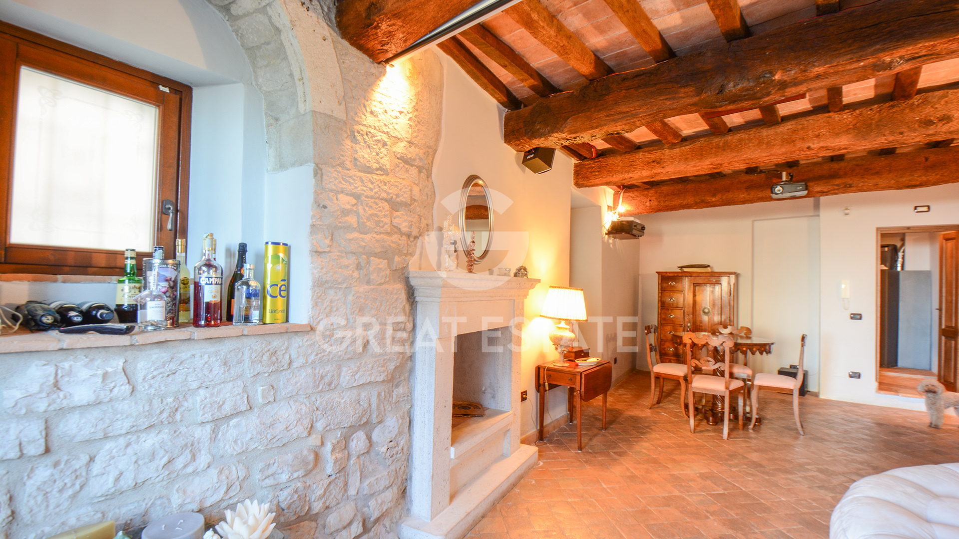 Finished with meticulous attention to detail, featuring floors partly in handmade terracotta and partly in wood, wooden ceilings with clay tiles, all in excellent condition