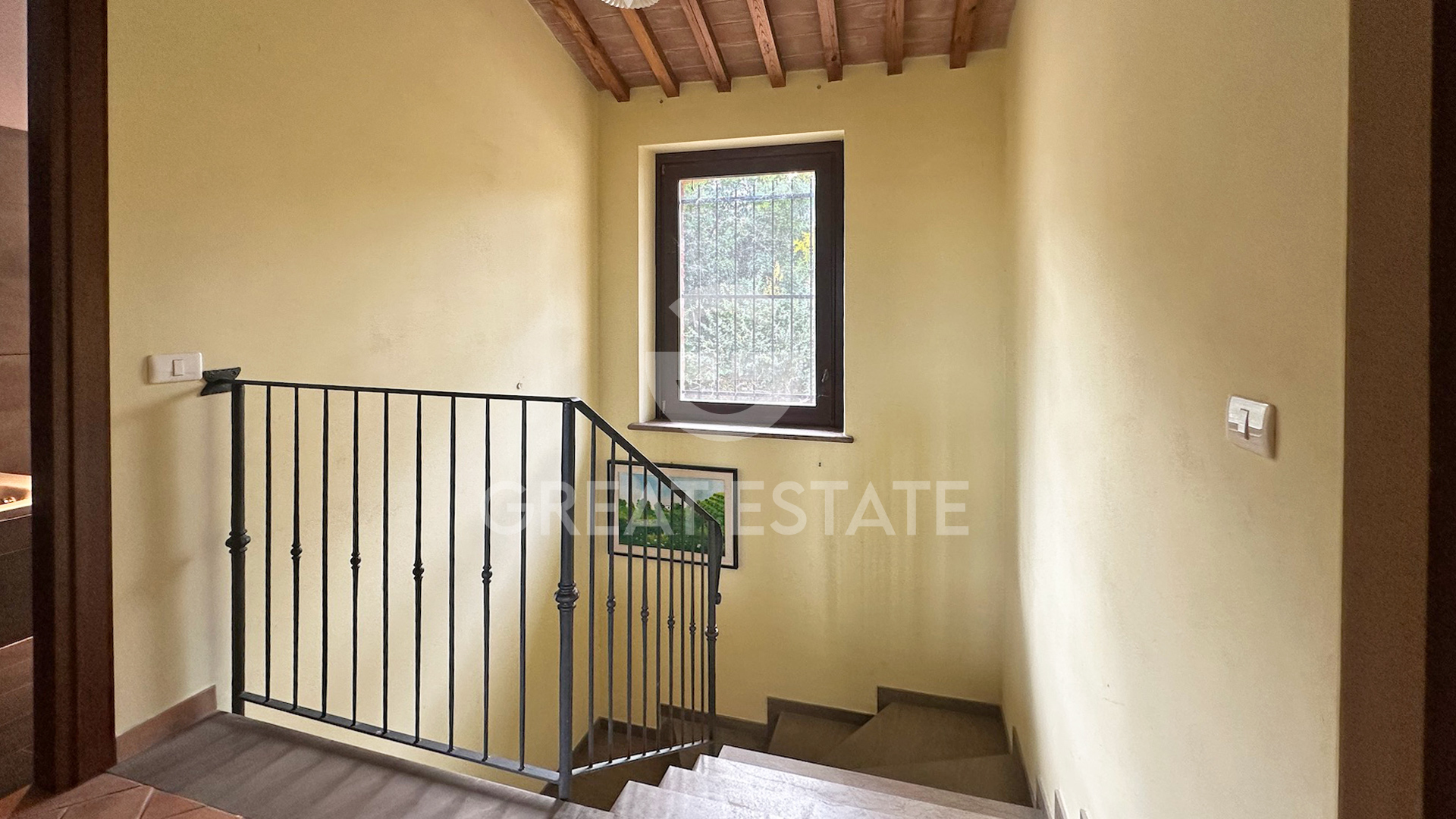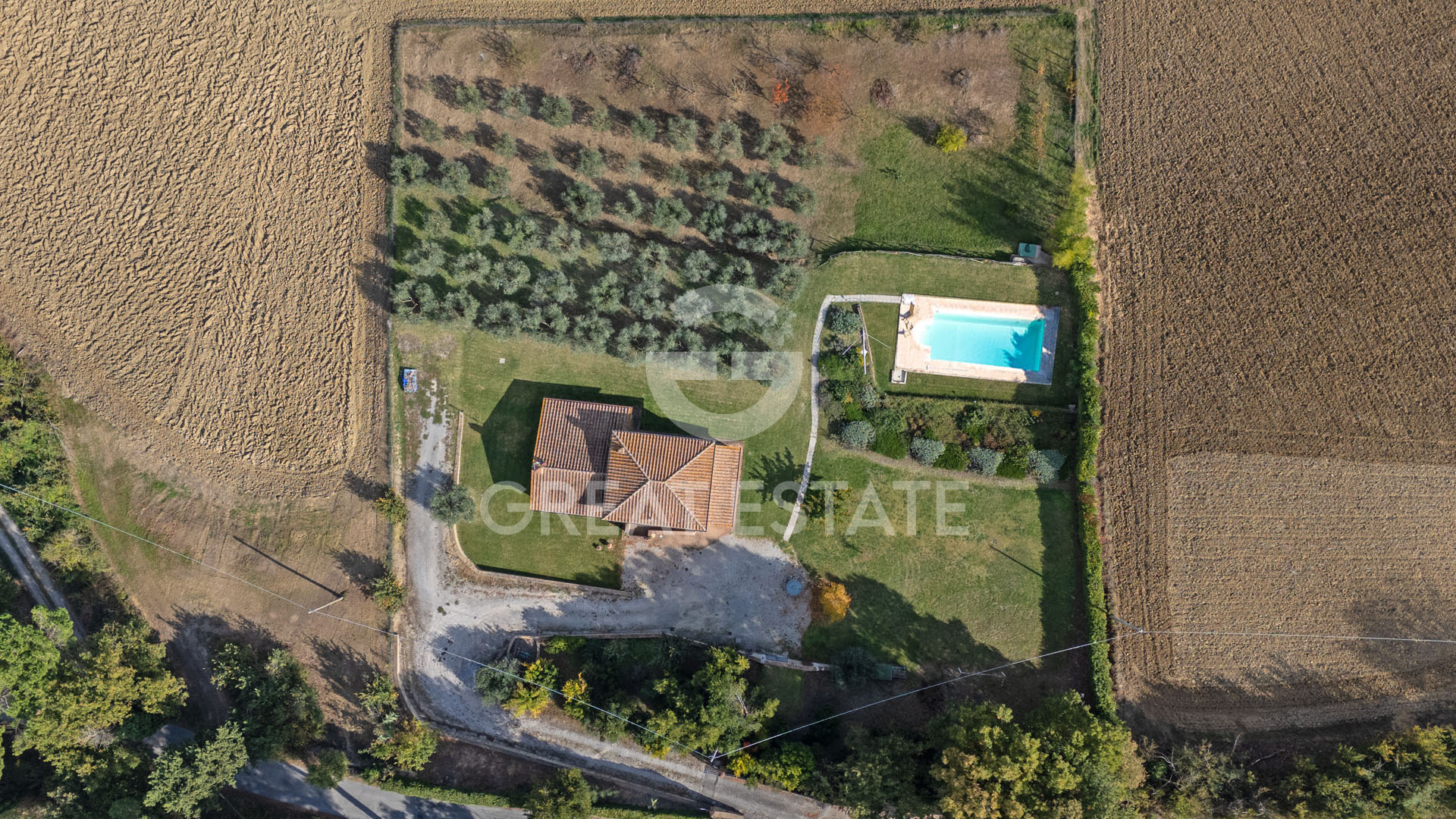 Elegant stone farmhouse built in 2007 in a panoramic position near Castiglione del Lago. Divided into two independent but connected units, it offers spacious interiors, 4 bedrooms, 4 bathrooms, a 6,500 sqm garden with 70 olive trees and a 6×12 m pool. Built with high-quality materials and modern comforts, it’s ideal as a main residence or a charming holiday home.