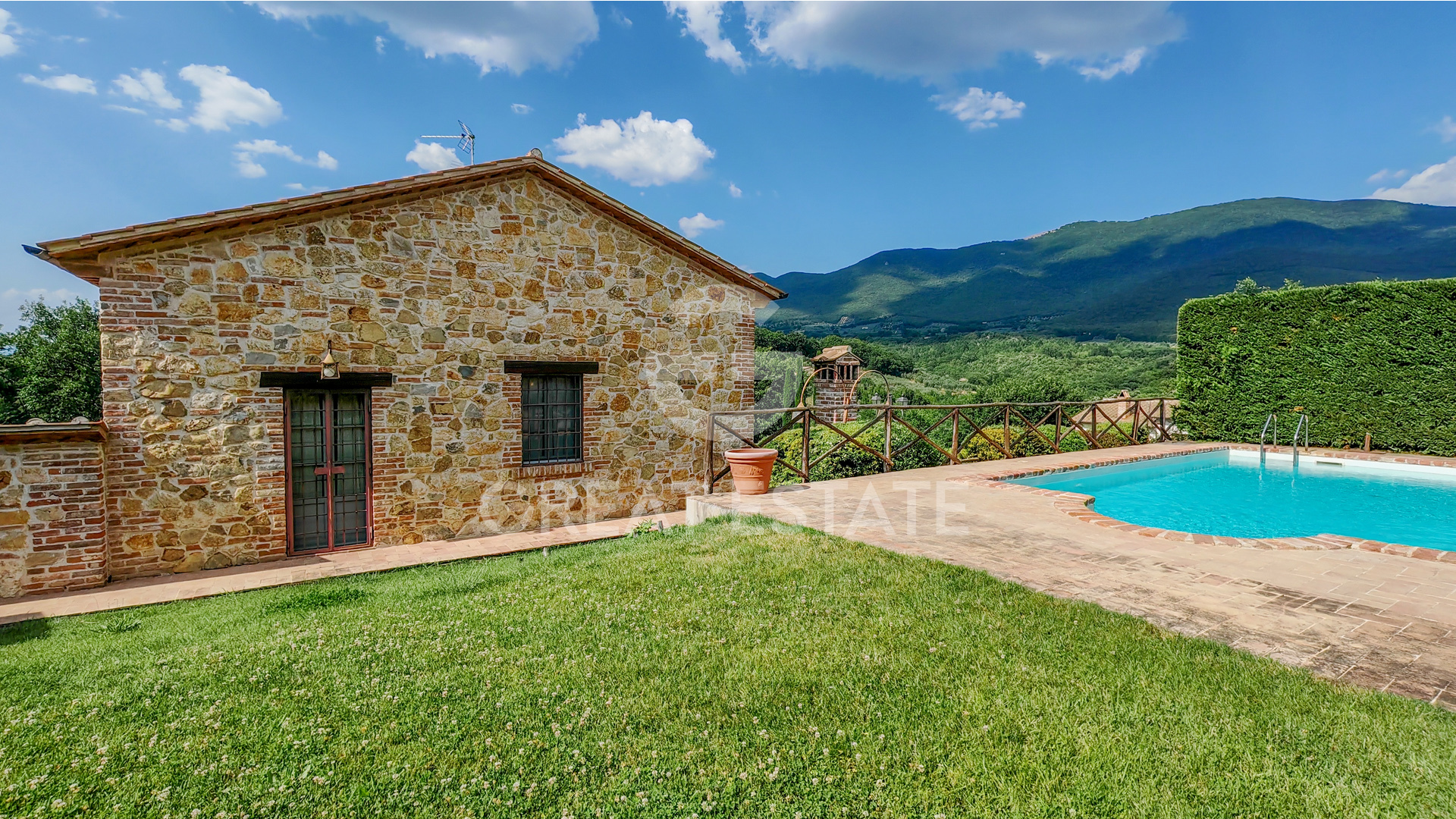 Nestled in the tranquility of the Umbrian hills, Casale Rotello is a newly built stone residence of approximately 230 sqm, surrounded by a 1,277 sqm garden featuring a swimming pool and panoramic views of the typical rural landscape.