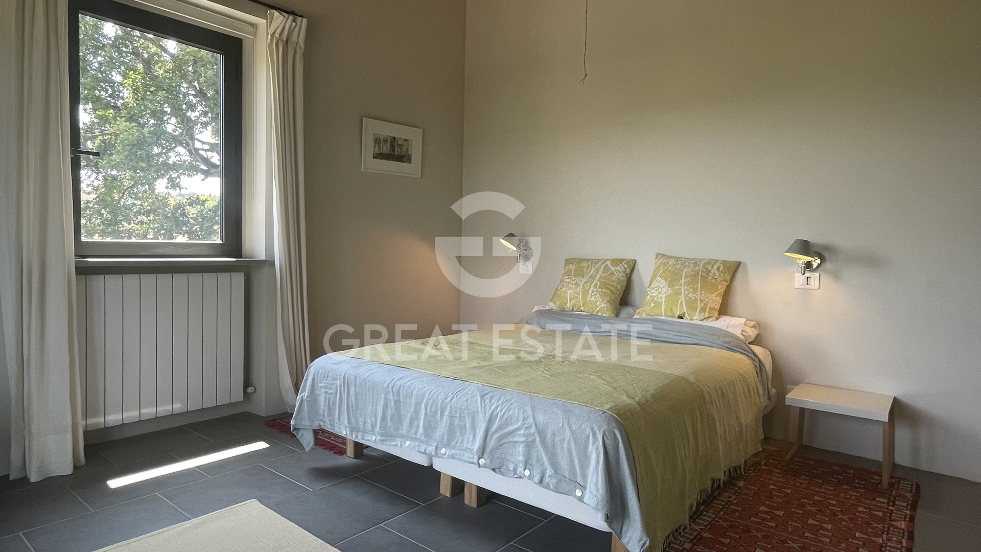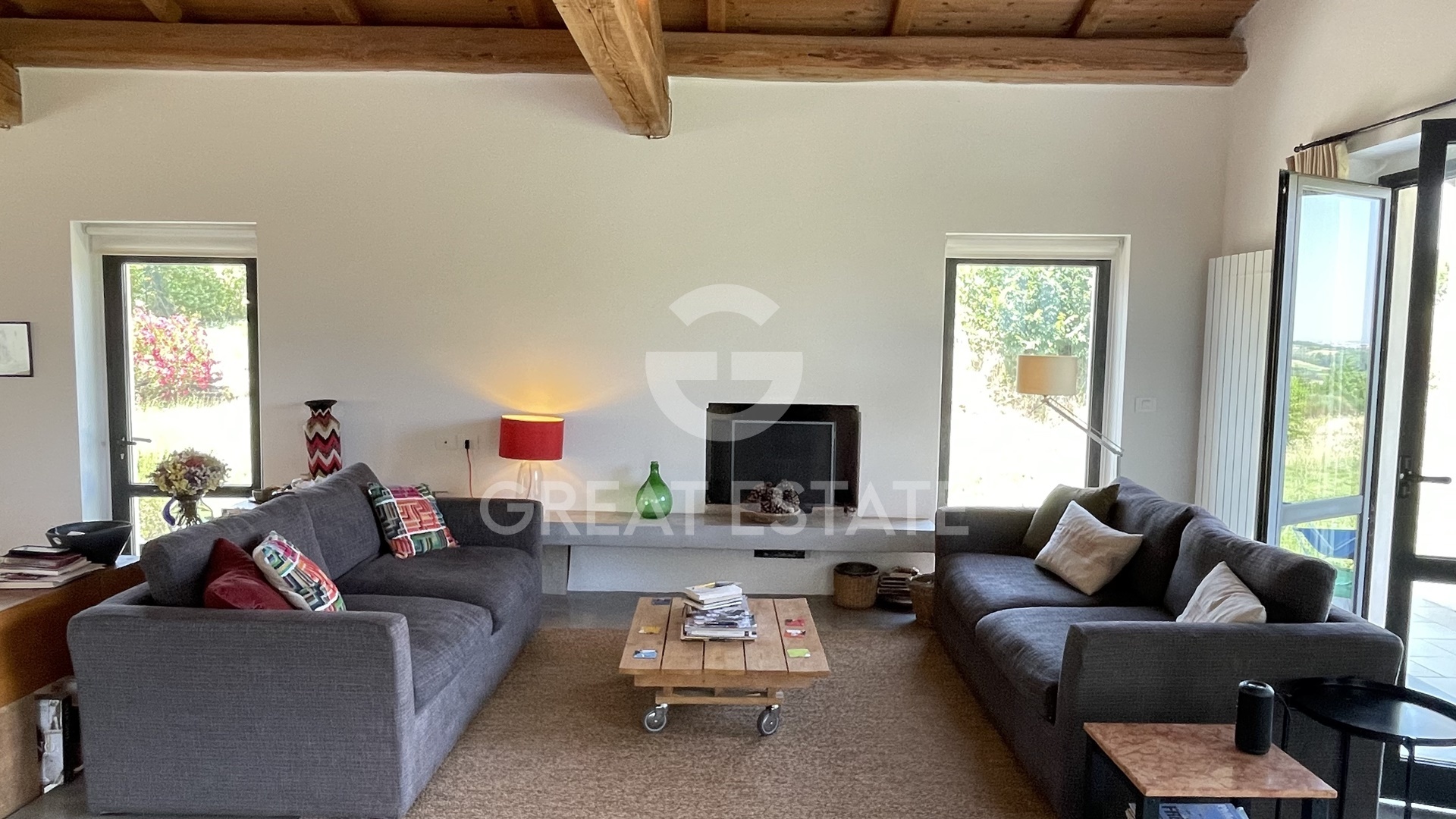 Just a few minutes from Todi, in one of the most scenic and sought-after hilltop areas of Umbria, Casale Le Vetrate is an impeccable property that blends comfort, natural light, and the beauty of the surrounding landscape. The interiors are spacious and filled with light, enhanced by large windows that open onto the greenery, creating a seamless connection with nature.