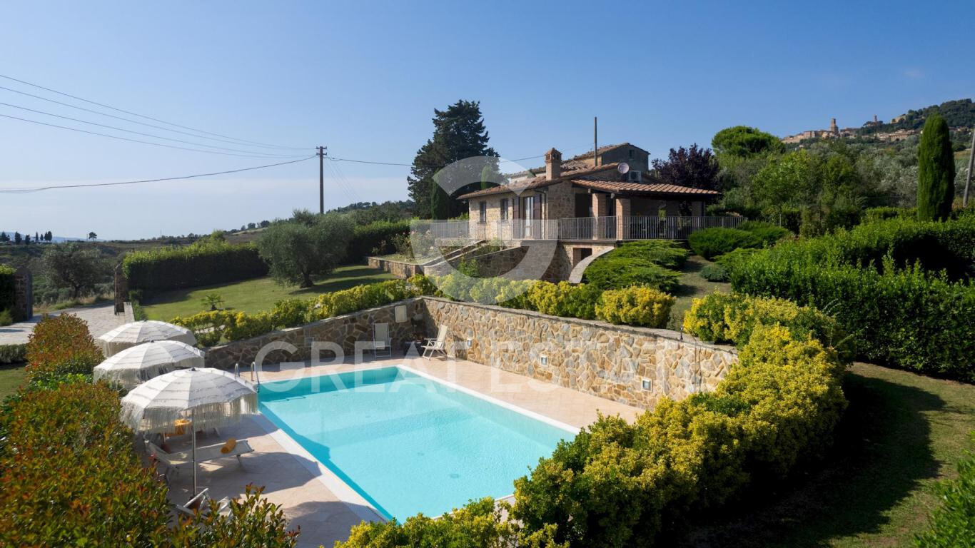 Lovely farmhouse for sale on one level a few steps from Volterra with 5×10 swimming pool and view of the beautiful countryside and the fantastic rolling hills typical of Tuscany.