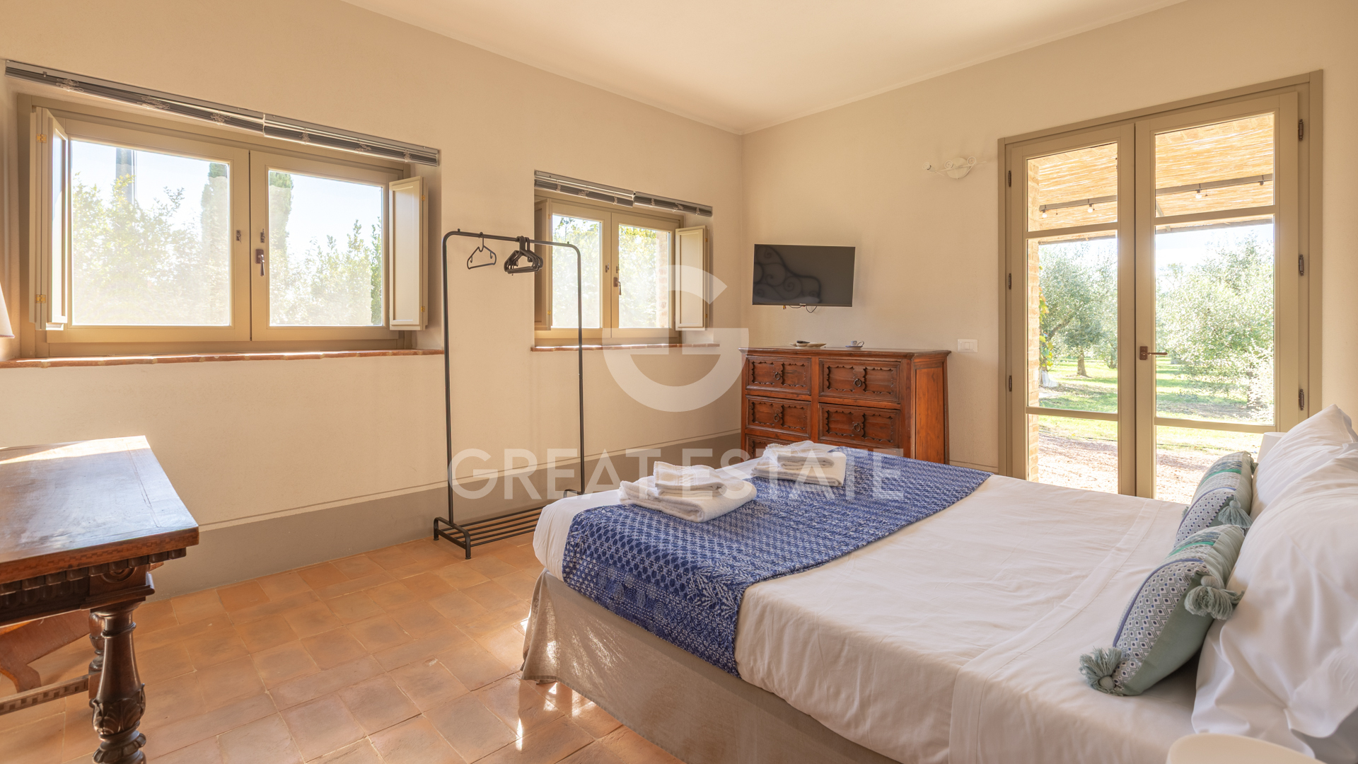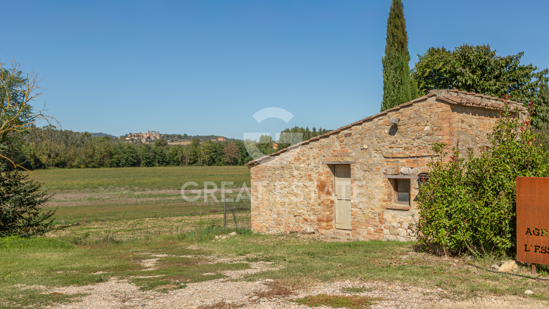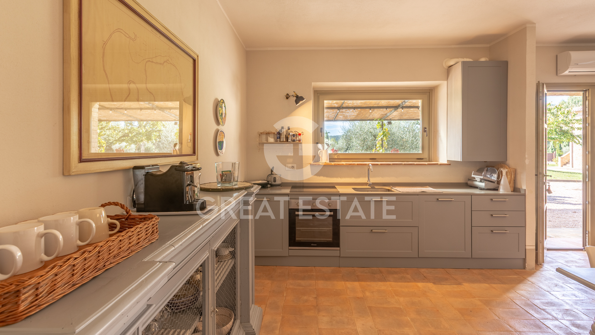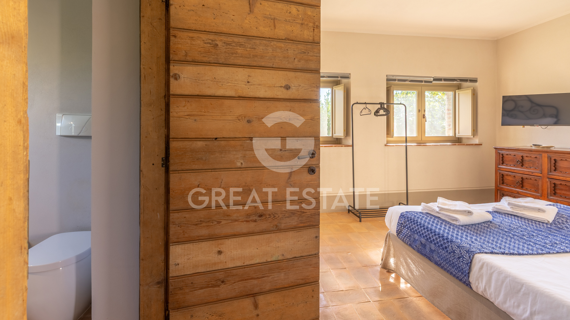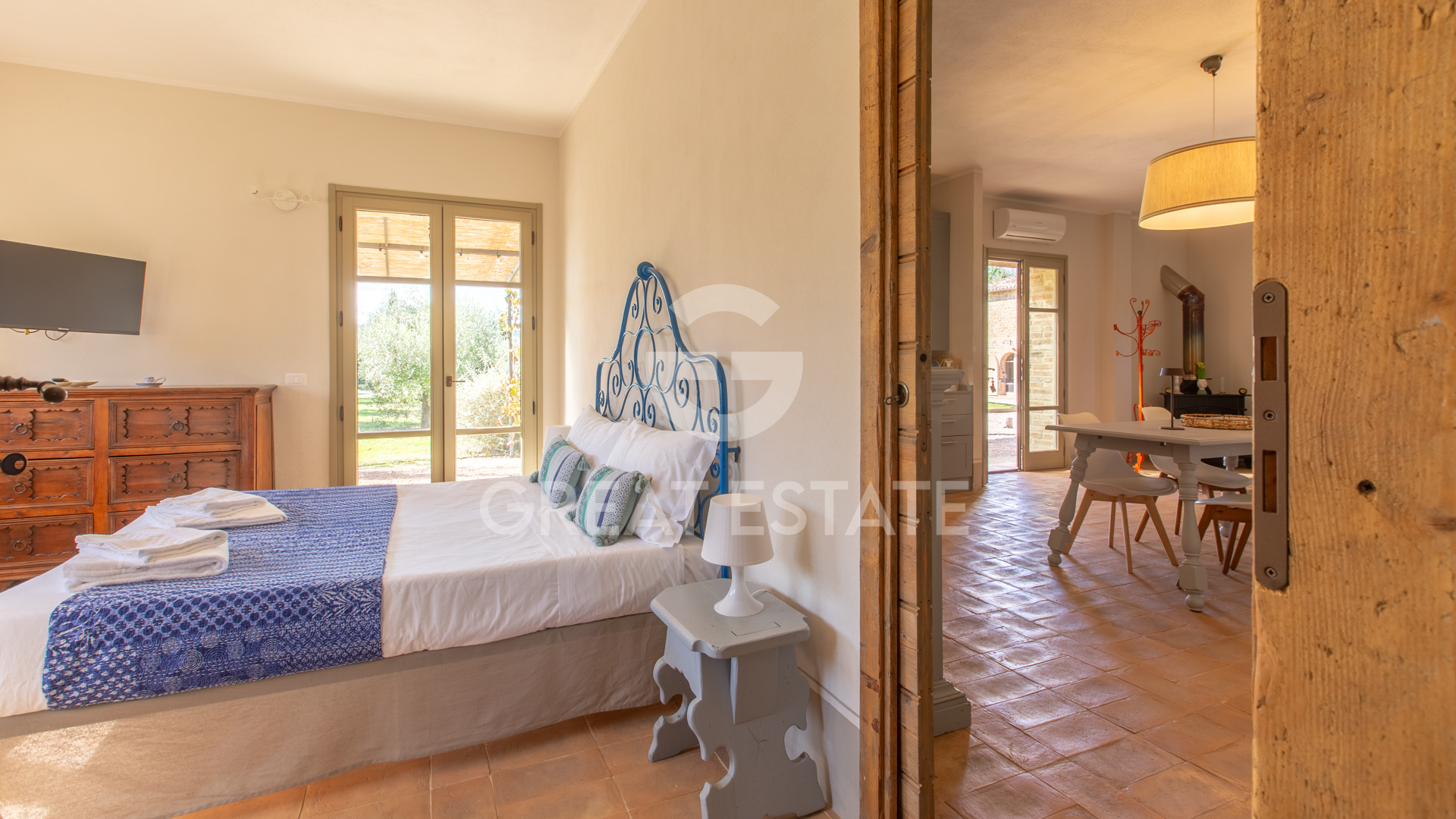 The main farmhouse, magnificently restored on the ground floor, is divided into two small independent apartments currently used for agritourism activities, and a large living room serving as a day area, in addition to rooms intended as storage but with the possibility to create additional living spaces. On the second floor, there are unfinished rooms also prepared to become further habitable areas of the farmhouse.