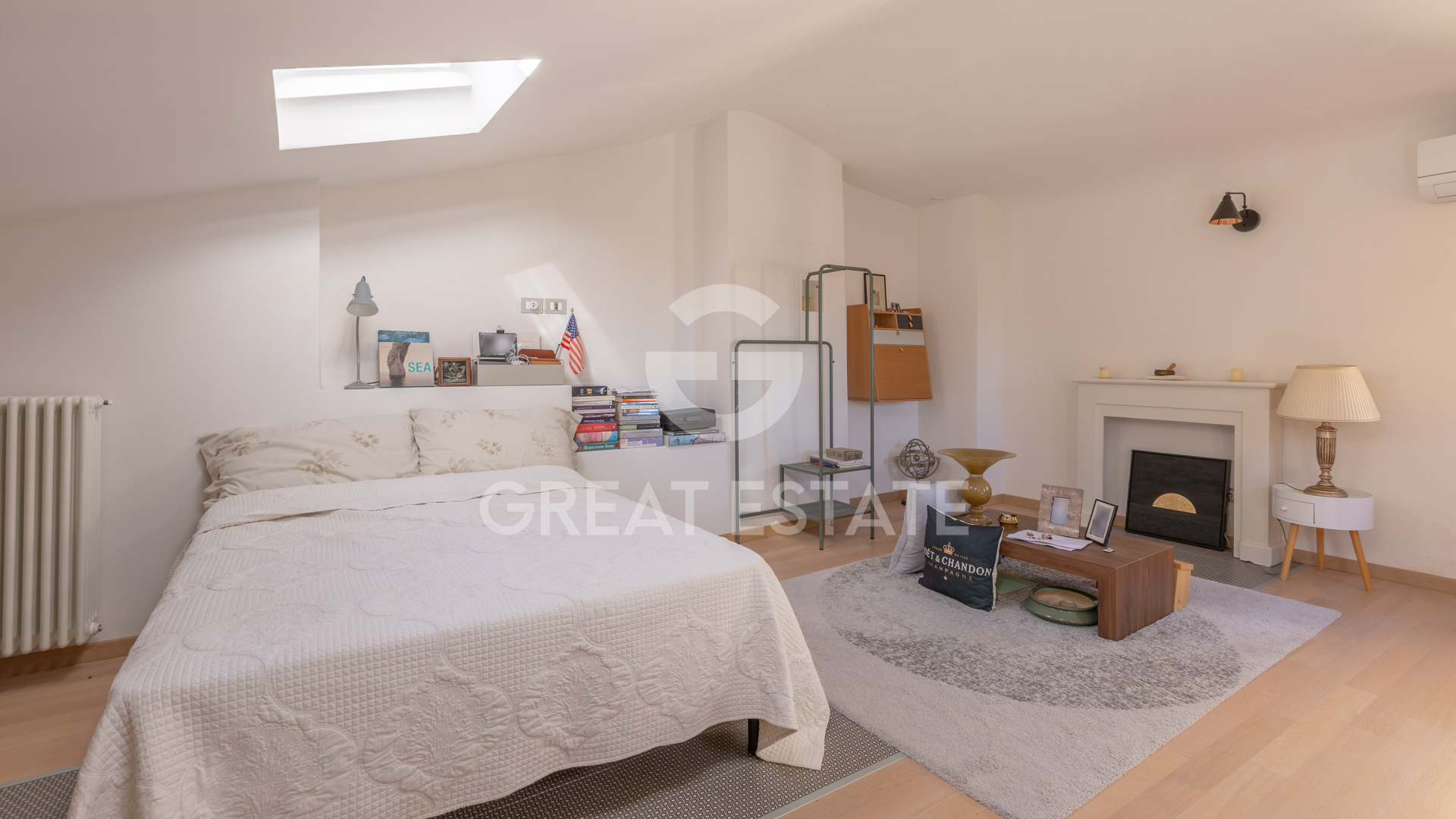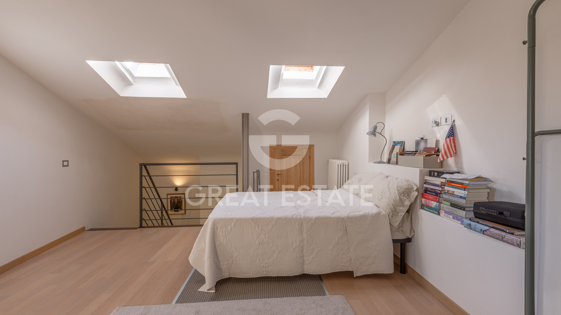 Third floor: Beautiful open-space attic (used as a bedroom/study) and small storage room.