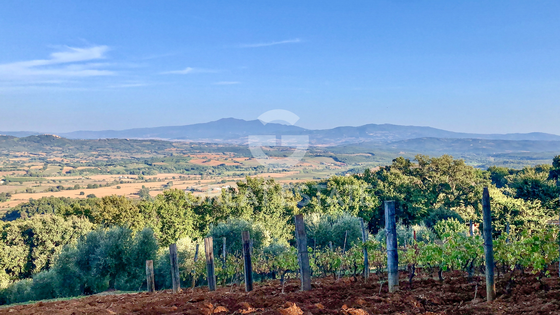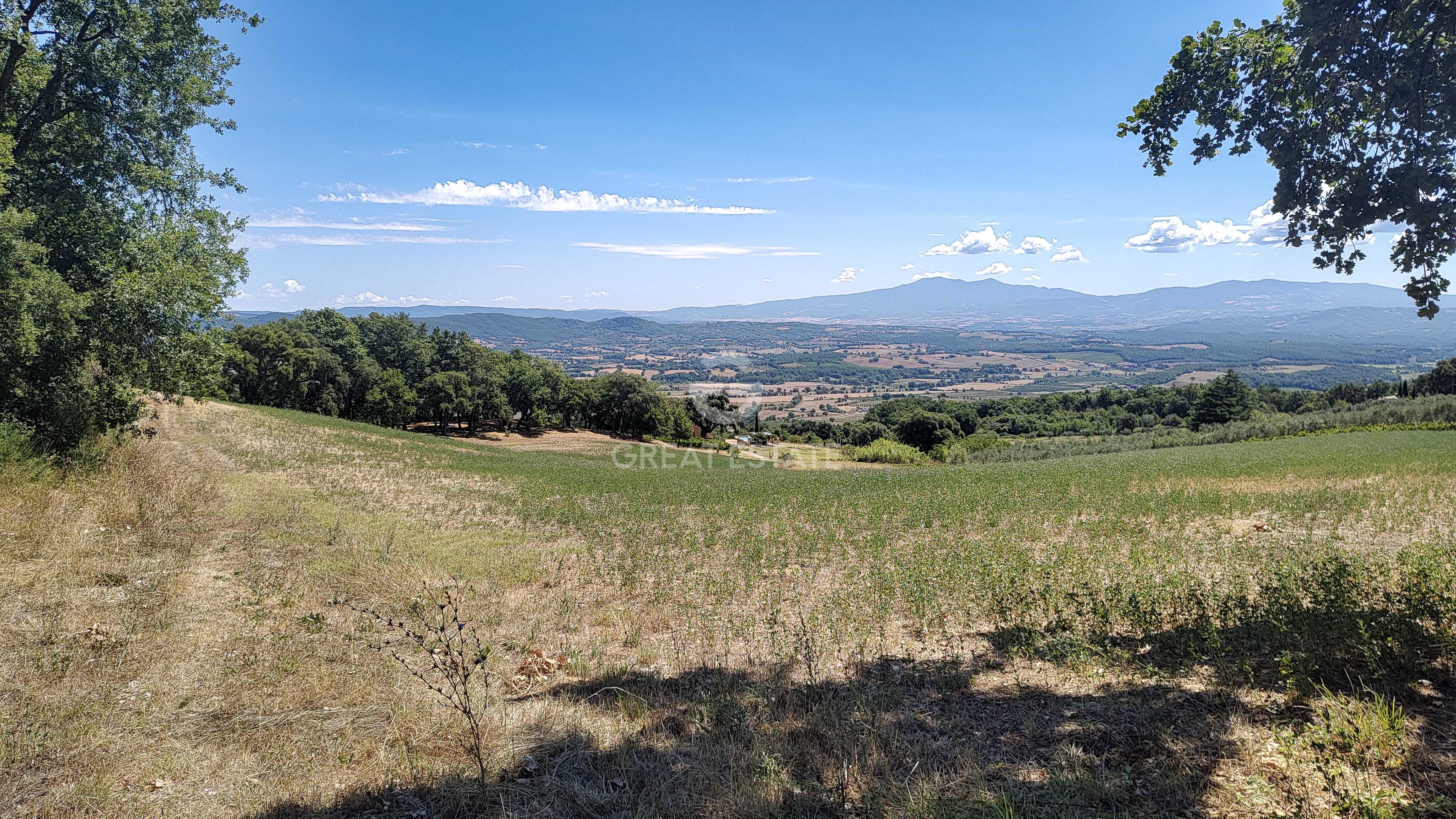 The 4.9-hectare agricultural land completes the estate and includes a small vineyard (4,000 m², Sangiovese and Ciliegiolo) and an olive grove with 250 trees. The remaining area is dedicated to arable land, orchard, woodland, and chestnut grove, creating a perfect balance between nature, comfort, and authentic Tuscan living.