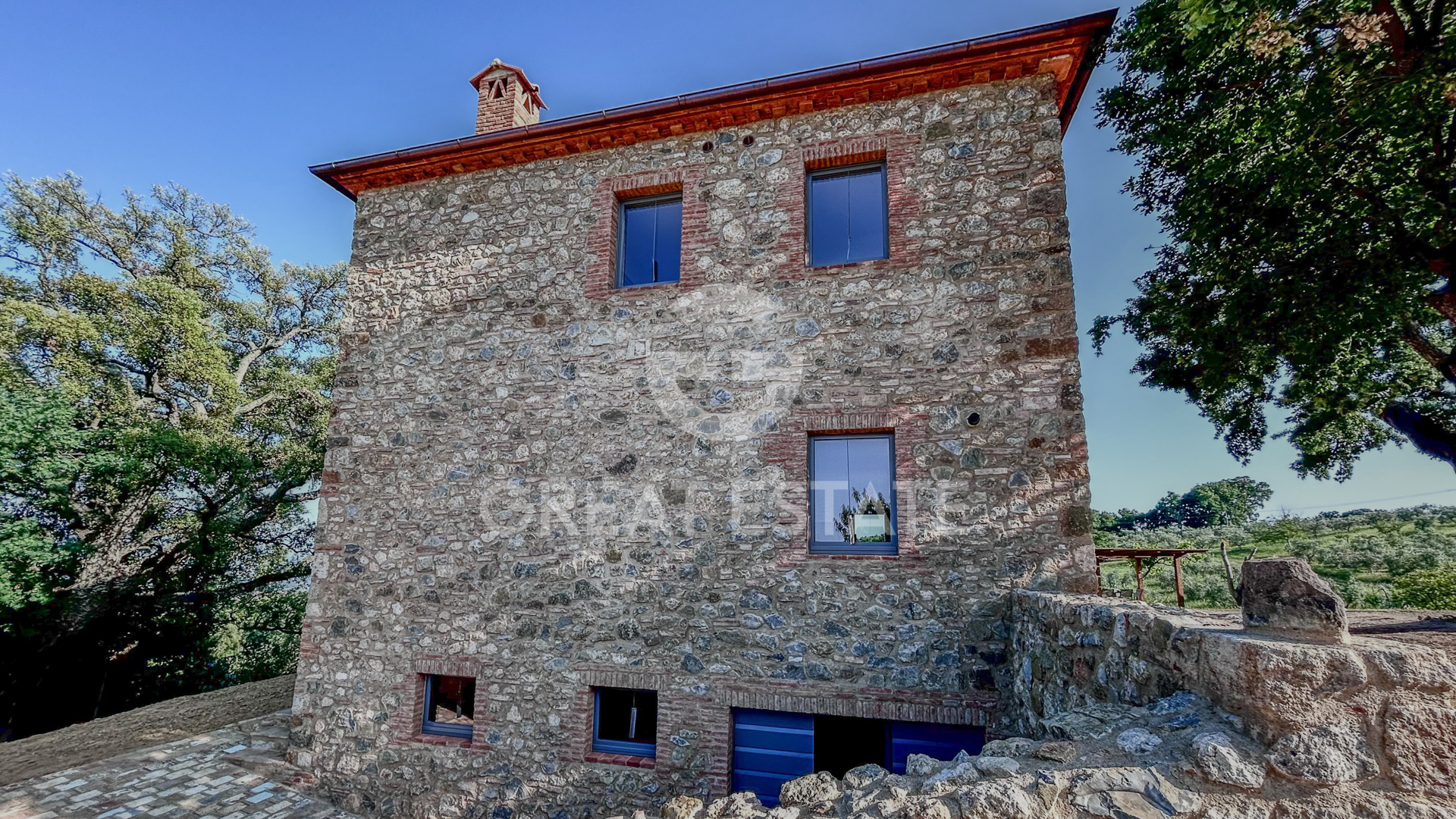 The property was completely restored in 2025, using traditional materials and a style that harmoniously combines antique elements with modern details. The internal flooring is travertine, with chestnut wood window frames featuring double glazing. The roof is perfectly insulated and ventilated.