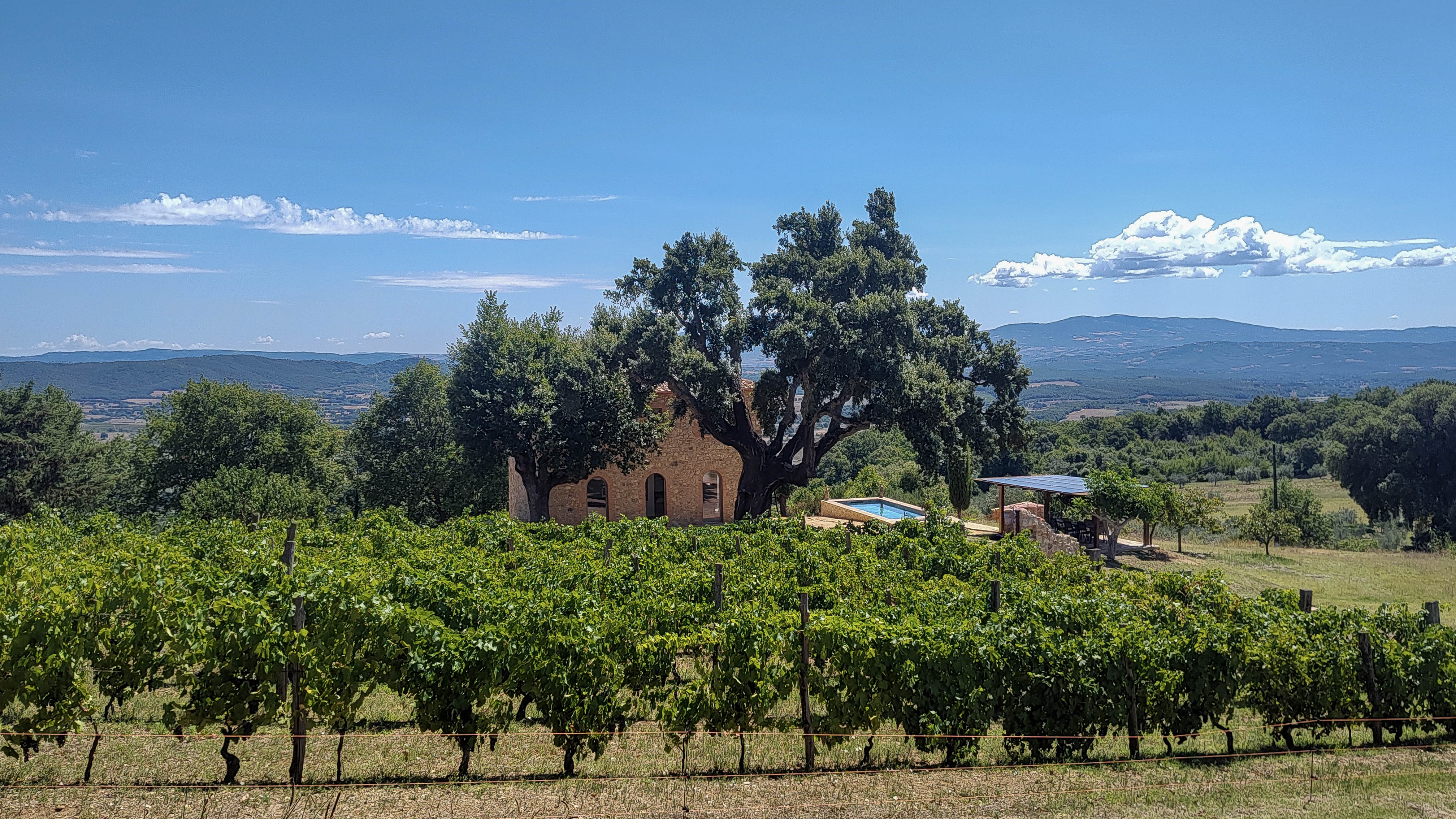 Il Rifugio del Sughero is located in a fabulous panoramic position surrounded by nature. The farmhouse was perfectly rebuilt in 2025 using traditional materials and a style that perfectly blends the ancient and the modern. The property covers an area of 250 square meters on two levels, with a technical area in the basement. This splendid residence is surrounded by a garden currently being completed, enriched with beautiful cork oaks and a private 8×3-meter swimming pool with a 30-square-meter pergola. The property’s 4.9 hectares of land guarantee maximum privacy and include 4,000 square meters of vineyards, 250 olive trees in production, and pleasant groves on the edge of the property.