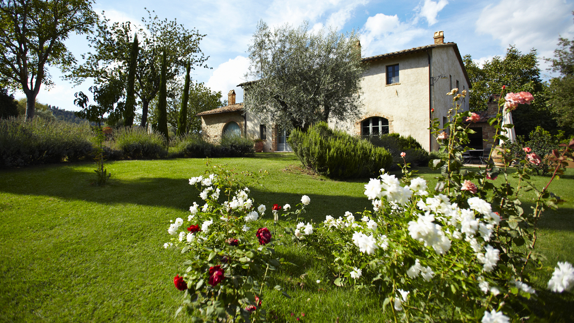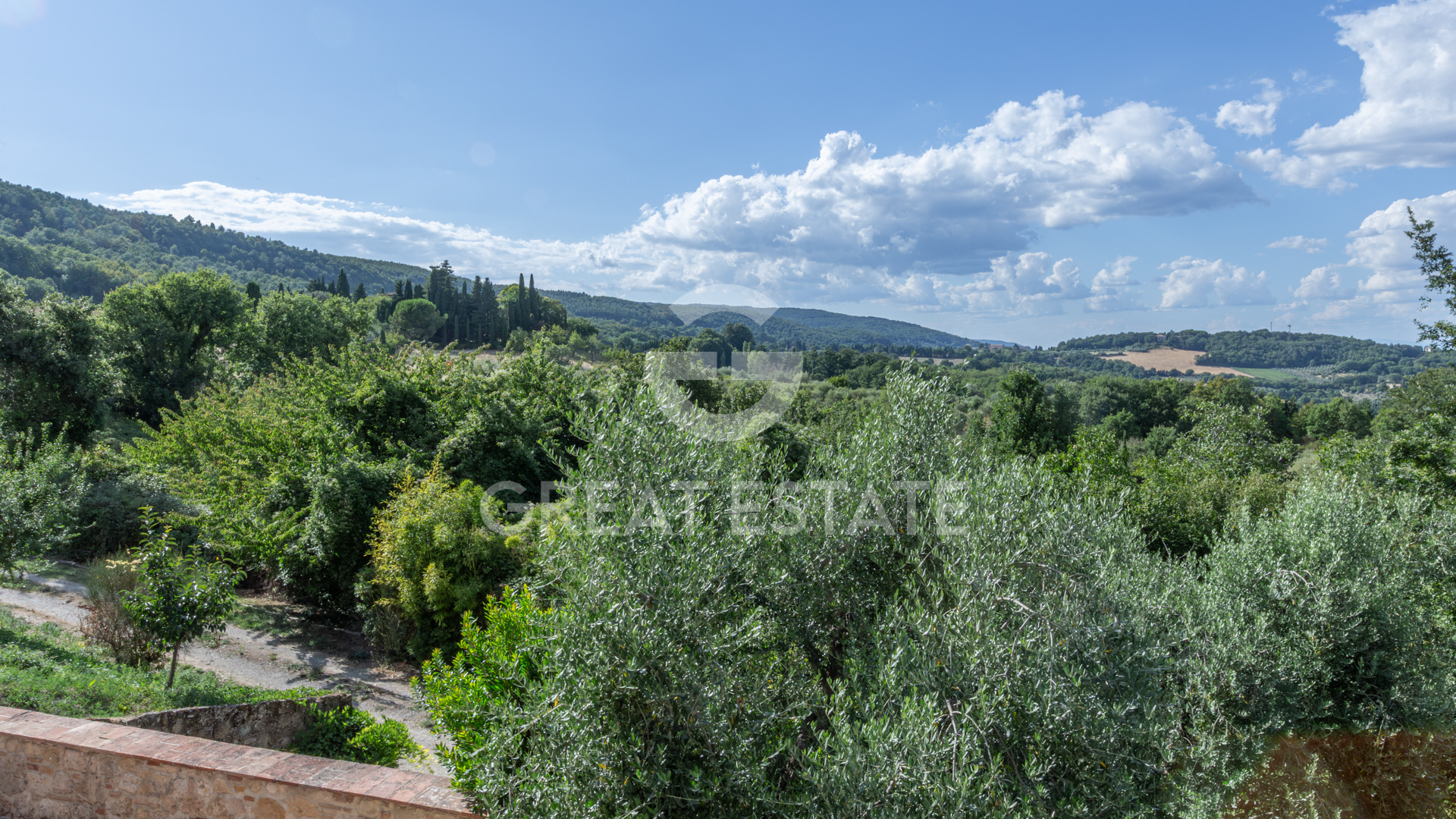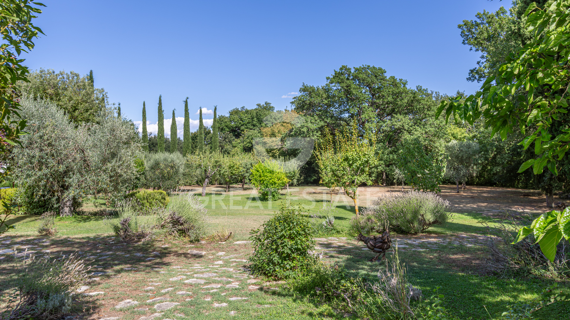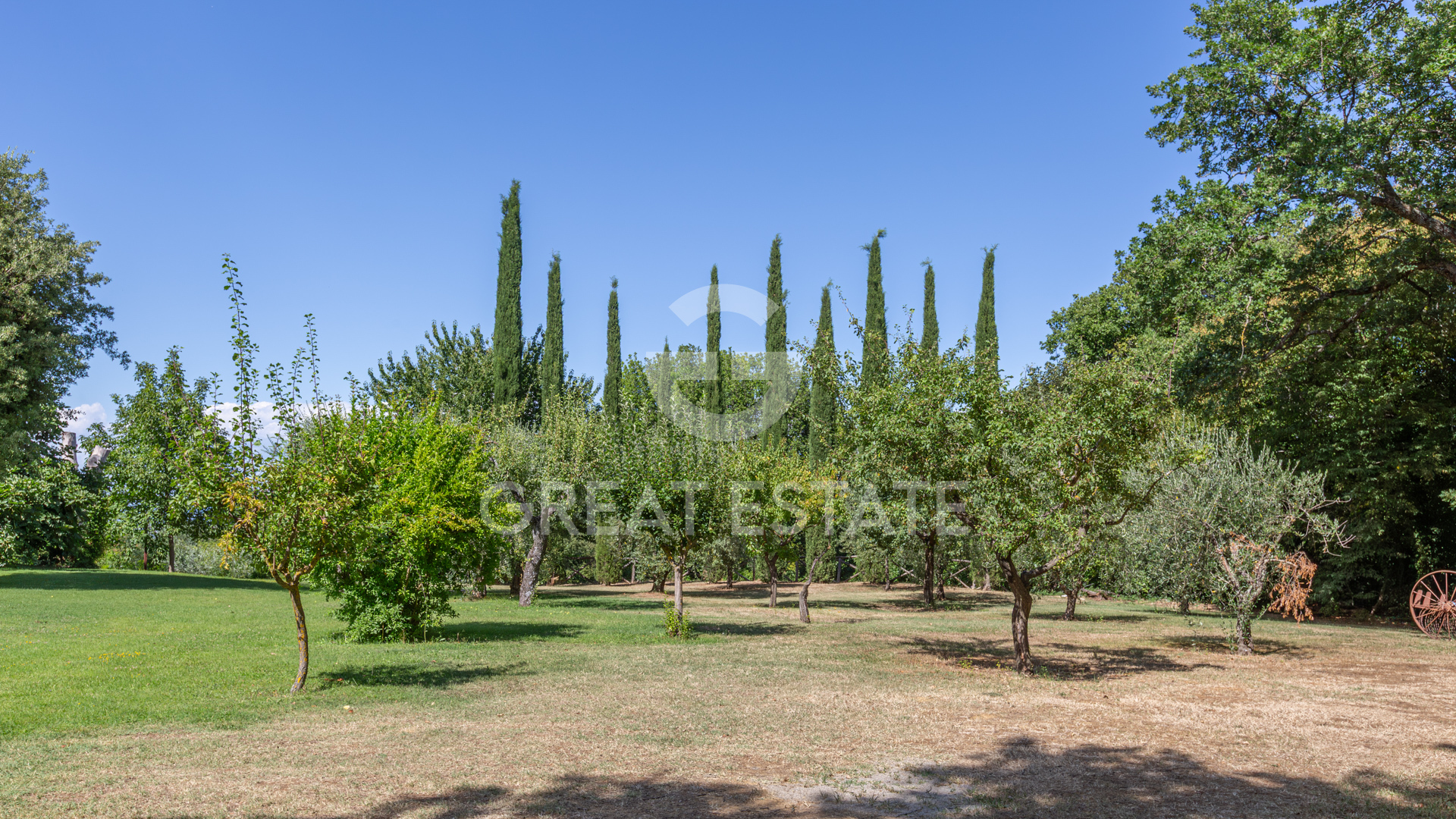 The property offers approximately 13.3 hectares of exclusive land consisting of the main entrance approached via a stunning avenue of Tuscan cypresses with an automatic gate, a secondary service entrance, 300 productive olive trees, arable land, and woodland.
