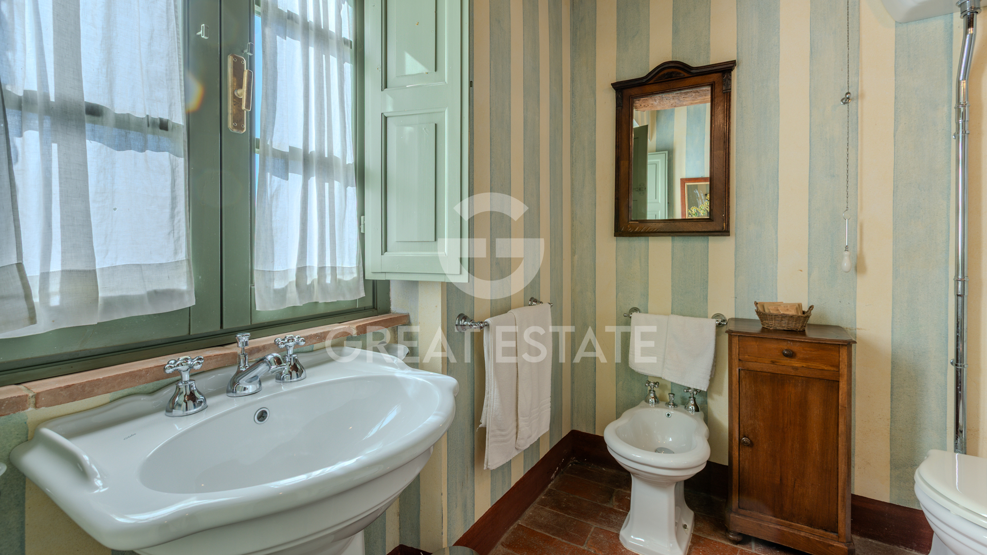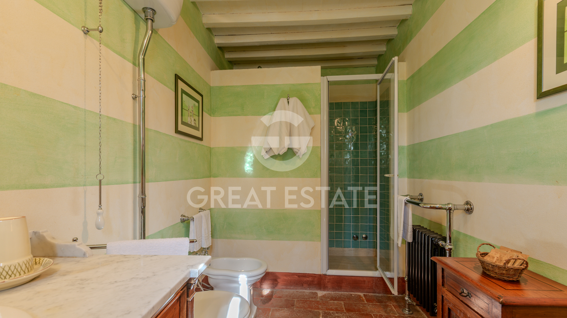 There are six bathrooms in total, elegantly outfitted with coordinated modern finishes, designer fixtures, a combination of bathtubs and showers featuring functional details, and cladding in natural stone and artisanal ceramics. The masonry kitchen stands out with traditional finishes harmonizing with the historic architecture, equipped with hand-crafted solid wood furniture and accessories that evoke a rustic yet functional style.