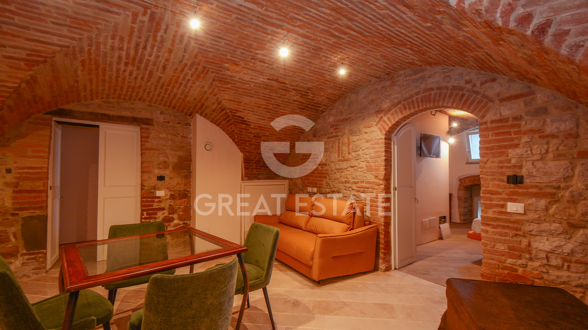 Located on the basement level of a historic building, this property — approximately 235 sqm commercial area — has undergone immaculate renovation, where every detail has been carefully crafted with taste and respect for tradition. The home offers dual entrances, one from the historic center and the other from the expansive private garden of about 1,800 sqm, with the possibility to create a vehicle access.