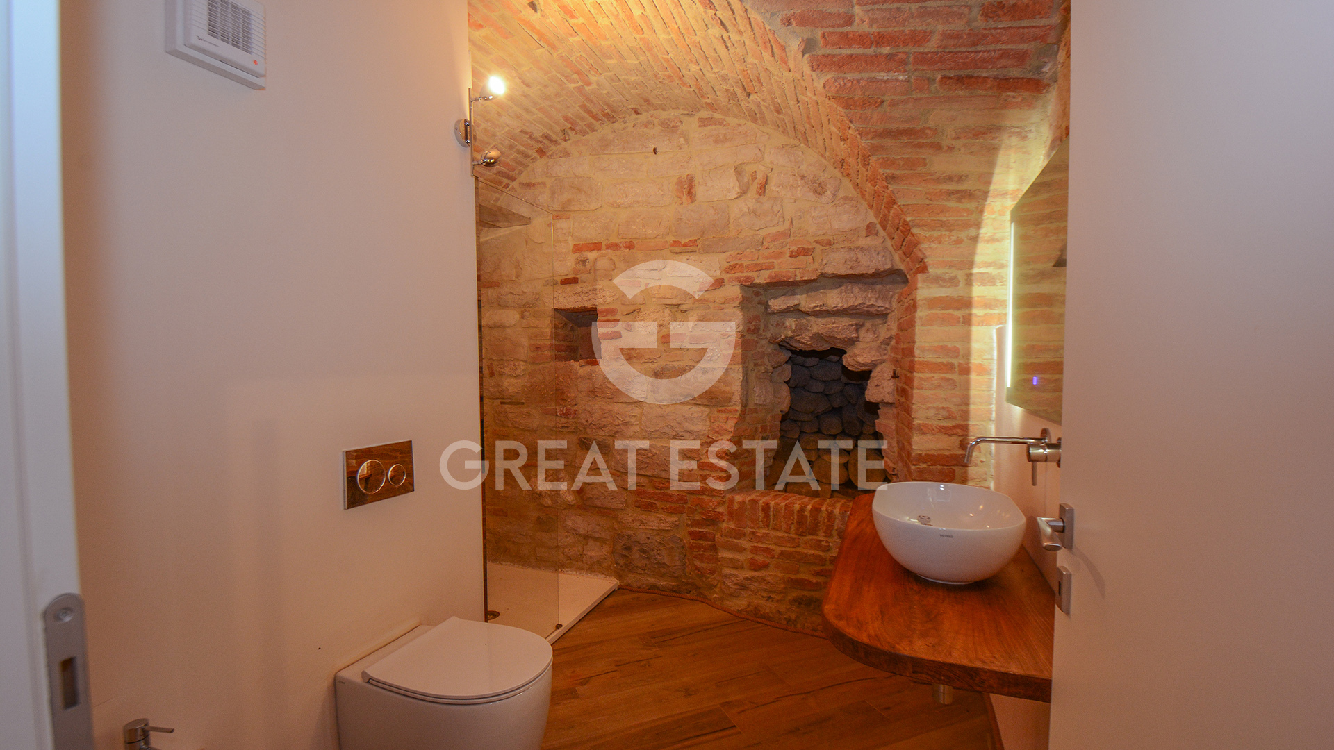 What truly makes this property unique is the presence of an ancient well and a Roman-era cistern, perfectly integrated into the living spaces, alongside an Etruscan wall visible in one of the bathrooms: authentic historical testimonies blending with advanced technological comforts — home automation system, centralized heating and cooling, video surveillance, and alarm system.