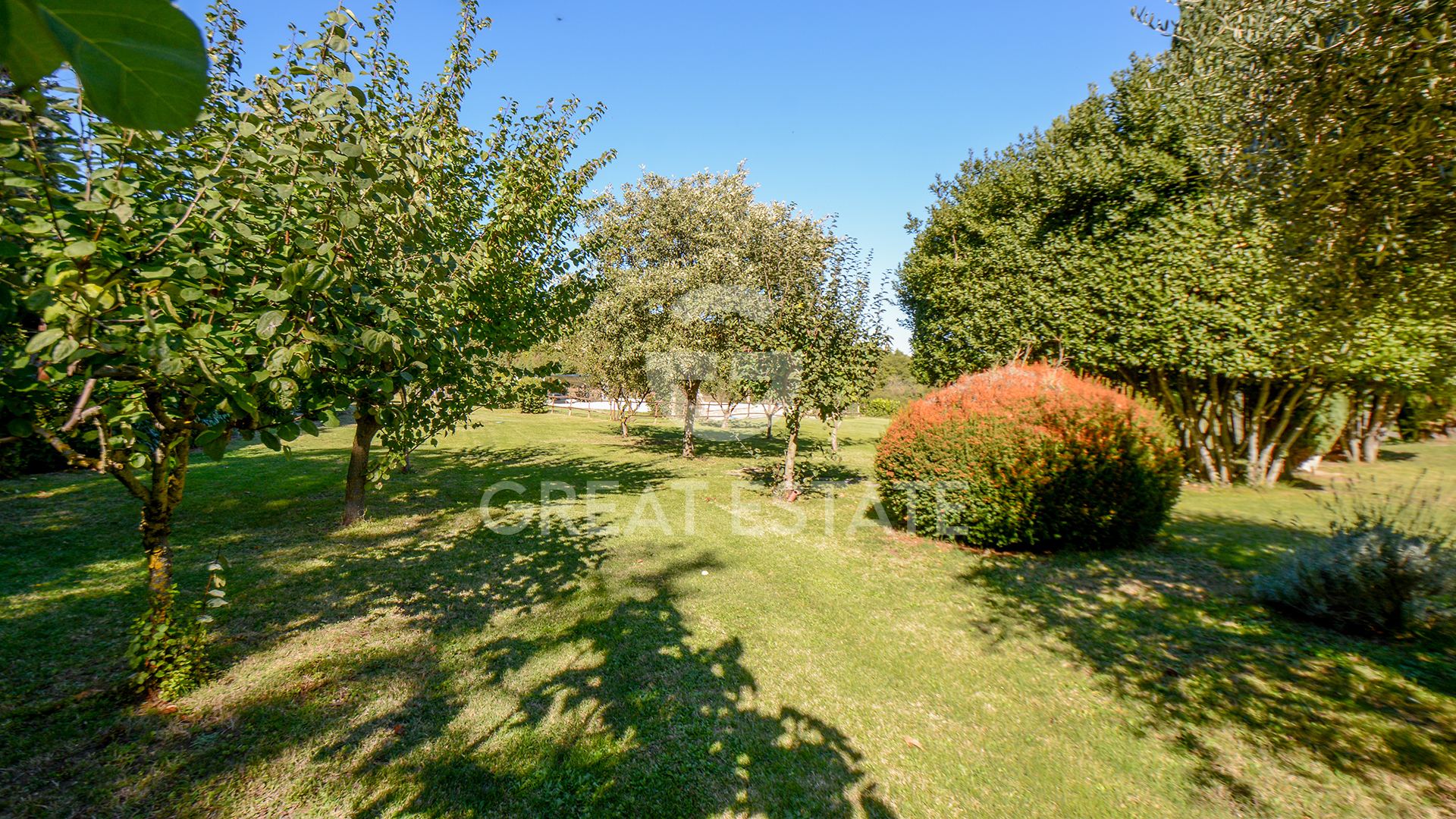 Externally, the swimming pool stands out with its basin lined in premium waterproof material, exquisitely maintained and naturally integrated within the architectural setting. The garden, an integral part of the estate, offers an additional space for relaxation and privacy, enhanced by stone-paved finishes that connect outdoor areas with interiors in a consistent stylistic flow. The quality of the exterior finishes is equally outstanding, featuring breathable plasters that protect and adorn the original masonry, preserving both its aesthetic and functional qualities over time.
