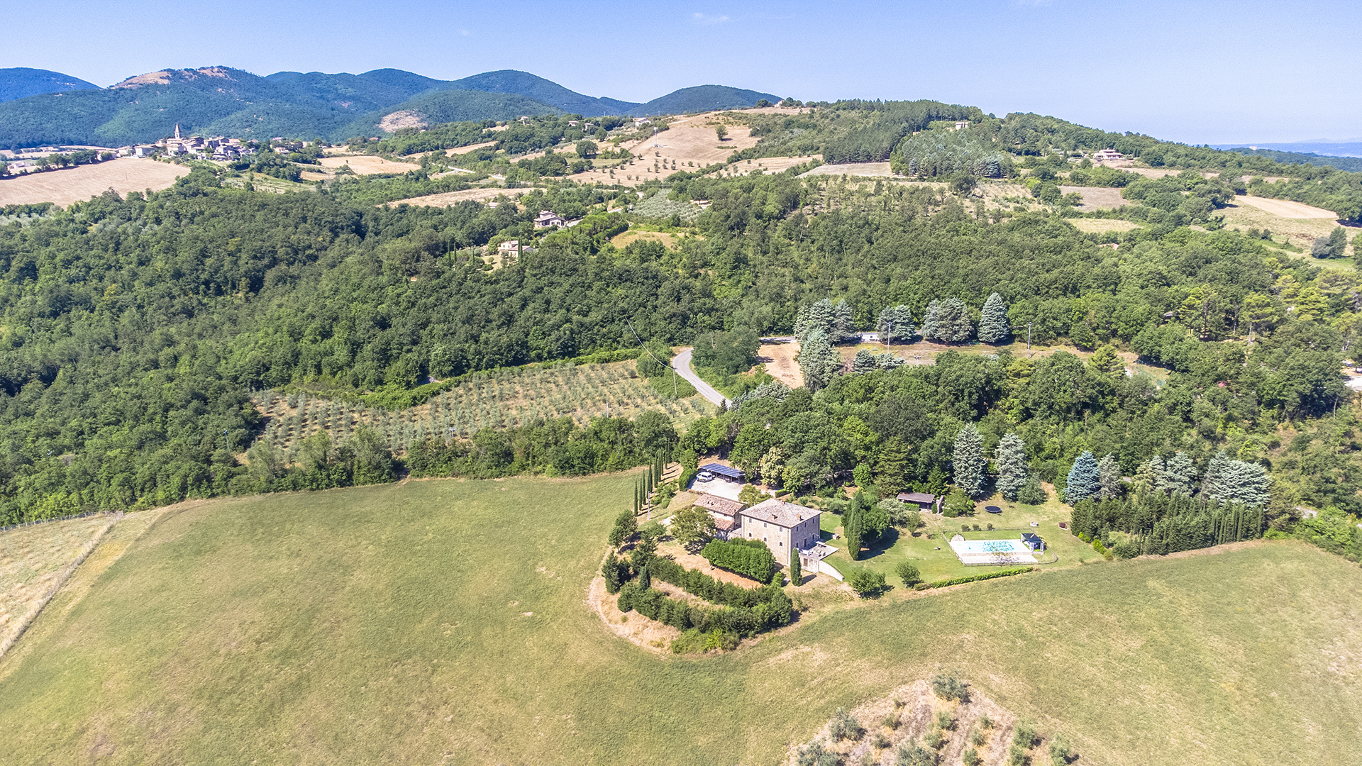 Nestled in the serene Umbrian hills, this historic estate offers a private sanctuary in perfect harmony with the surrounding nature. The panoramic views gently sweep across rolling landscapes, while the inviting pool provides an ideal setting for outdoor relaxation and enjoyment. Meticulously restored with exquisite attention to detail, the residence preserves its timeless charm enhanced by luxurious finishes, creating an elegant and refined ambiance. The surrounding cultivable land presents authentic opportunities to embrace traditional rural living, making this property perfect for a sophisticated lifestyle balancing elegance, tranquility, and heritage.