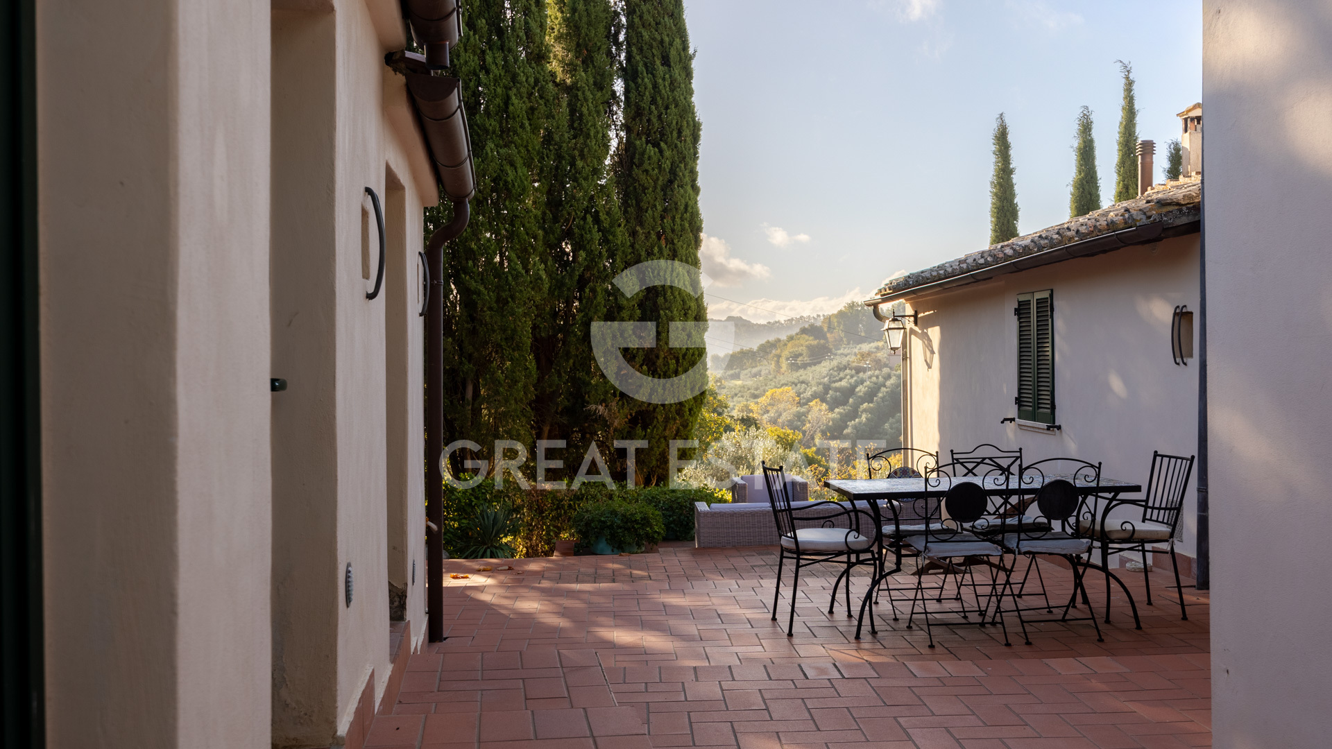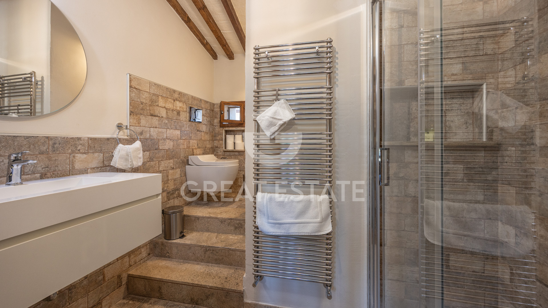 The estate is enhanced by a 3,403 sqm plot of land that hosts 40 valuable olive trees. Completing the complex are two annexes: the first already has permits to be converted into a guest house, ideal for hosting (with a living area, bedroom, and bathroom), while the second is reserved for technical rooms.