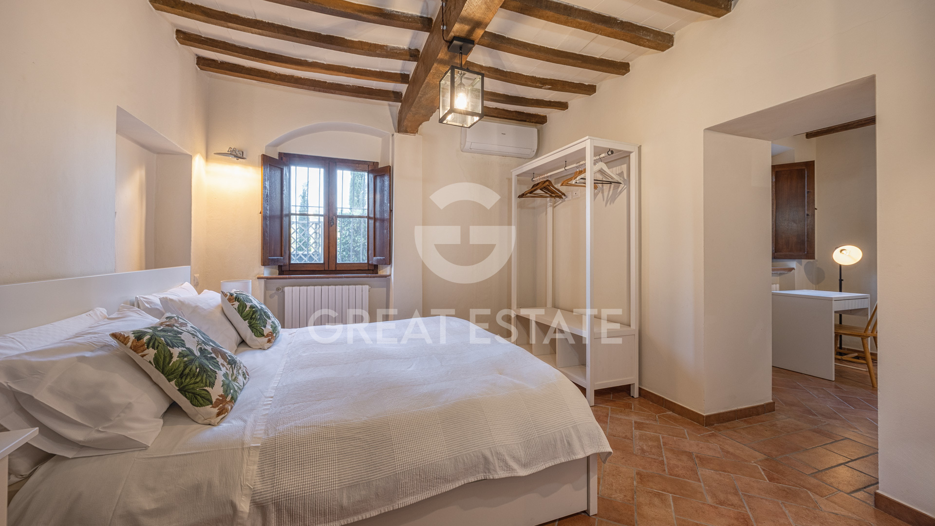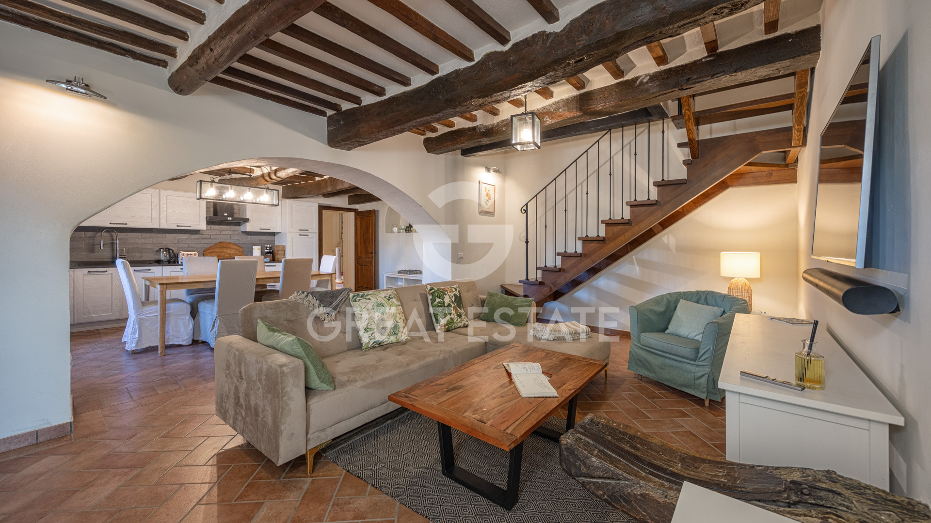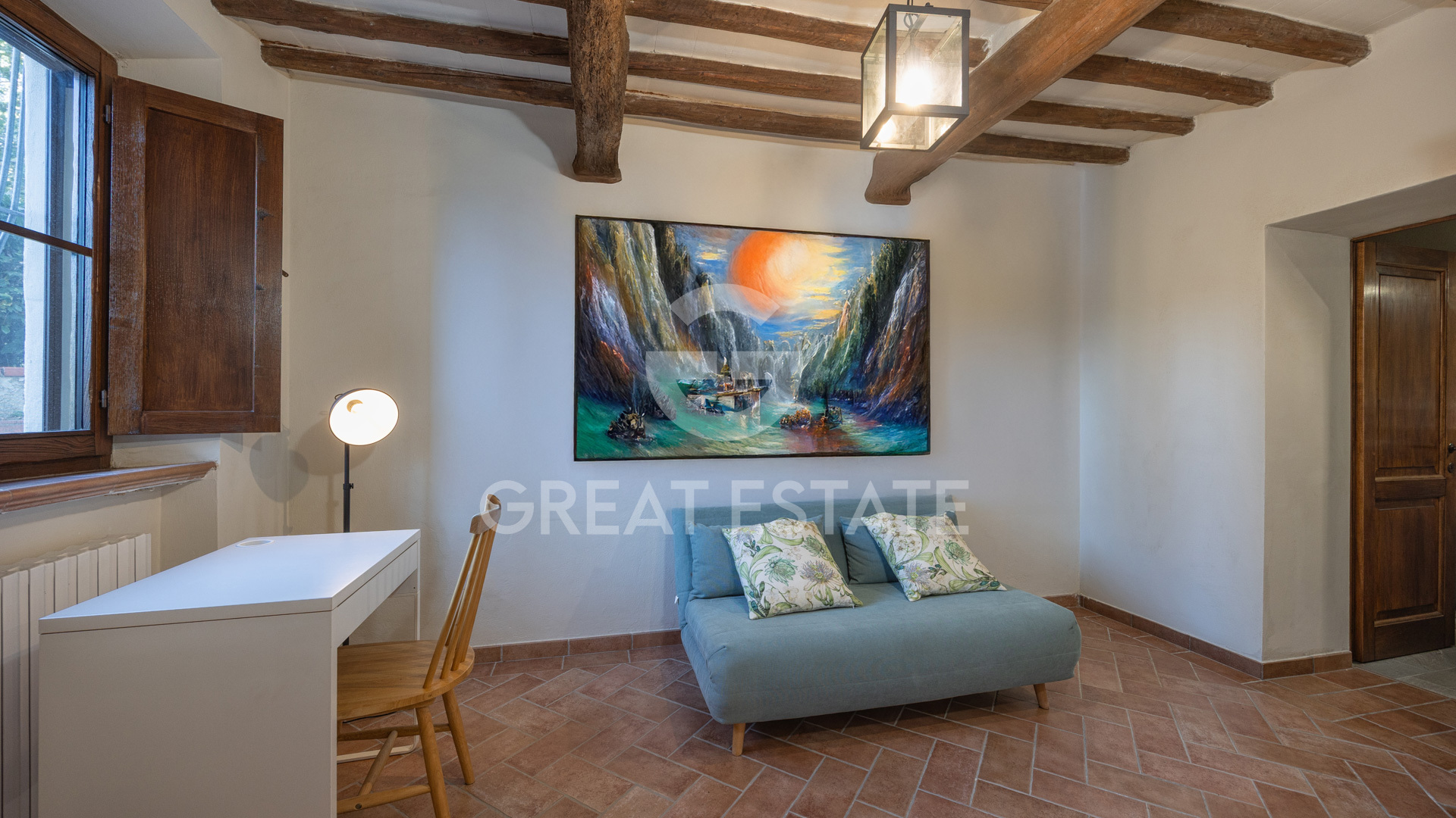 The 2020 restoration enhanced the Tuscan roots of the property, preserving its most beautiful details: terracotta floors, wooden beams and characteristic arches. This solid foundation is complemented by furniture with a modern and tasteful design that, without altering the essence, brings remarkable brightness and freshness to the spaces. Additionally, all windows feature double glazing.