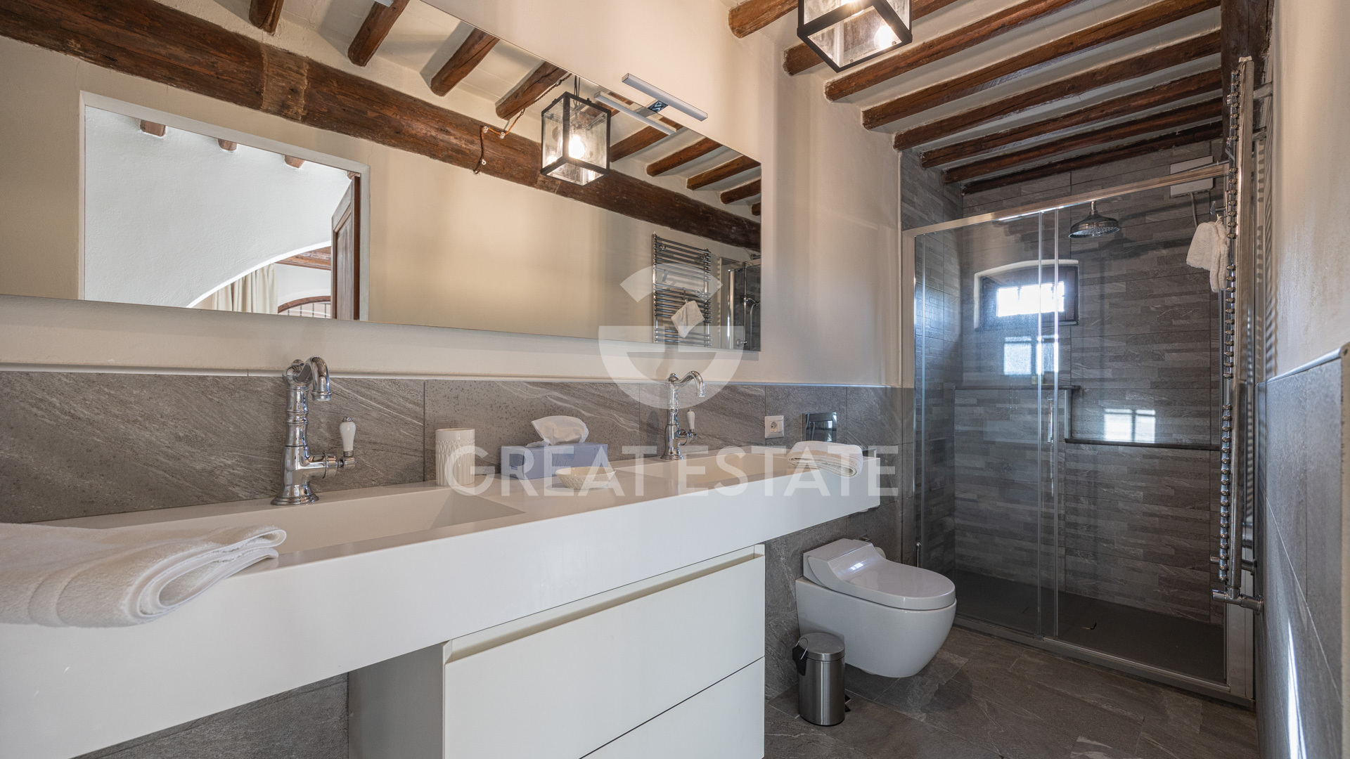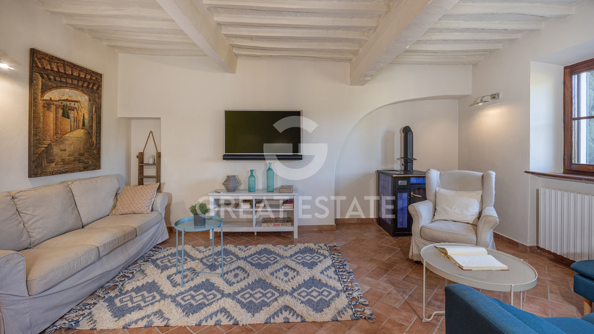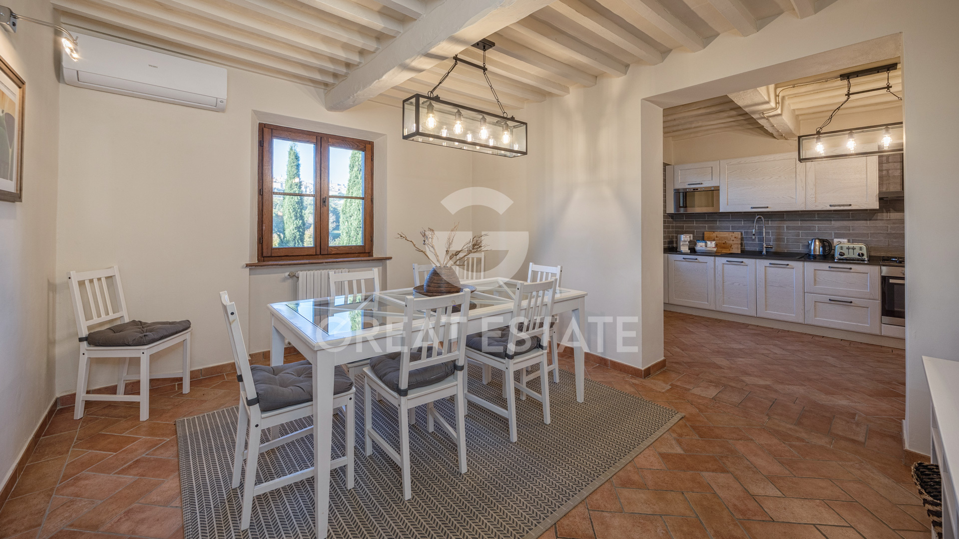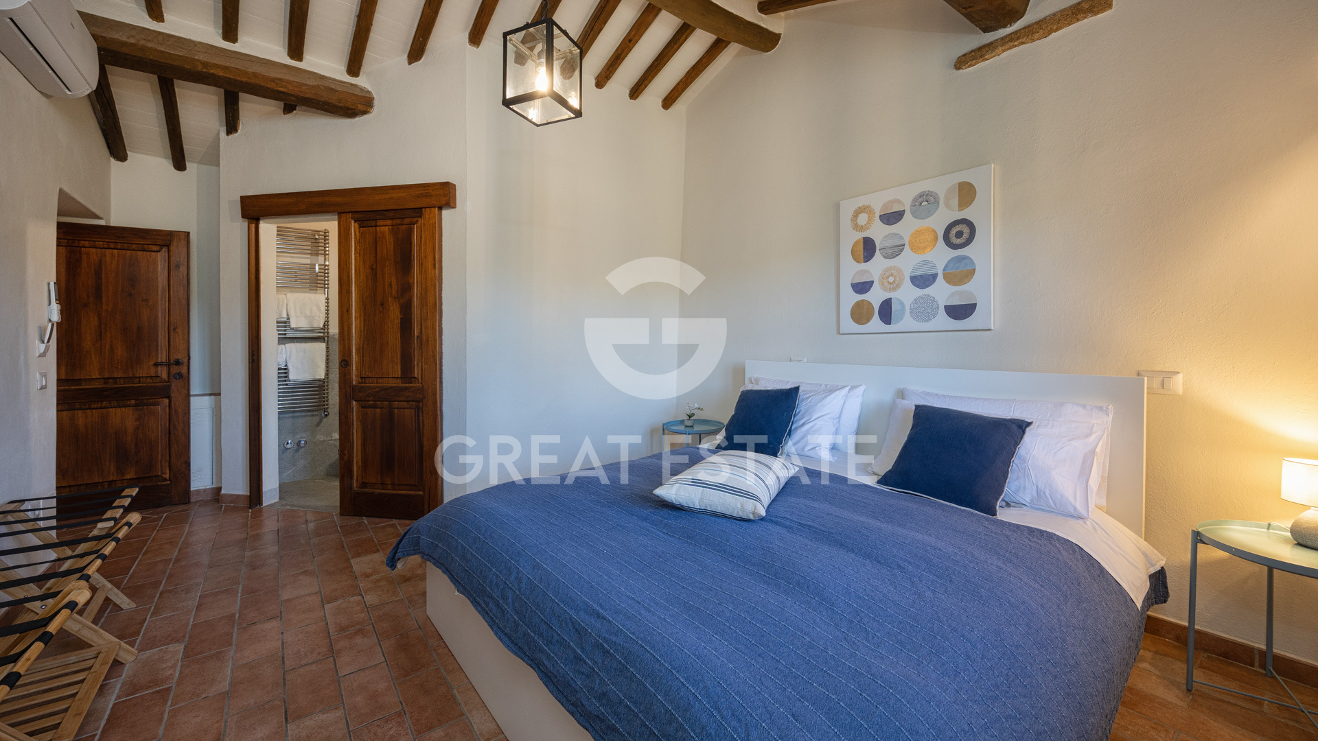 The 2020 restoration enhanced the Tuscan roots of the property, preserving its most beautiful details: terracotta floors, wooden beams and characteristic arches. This solid foundation is complemented by furniture with a modern and tasteful design that, without altering the essence, brings remarkable brightness and freshness to the spaces. Additionally, all windows feature double glazing.