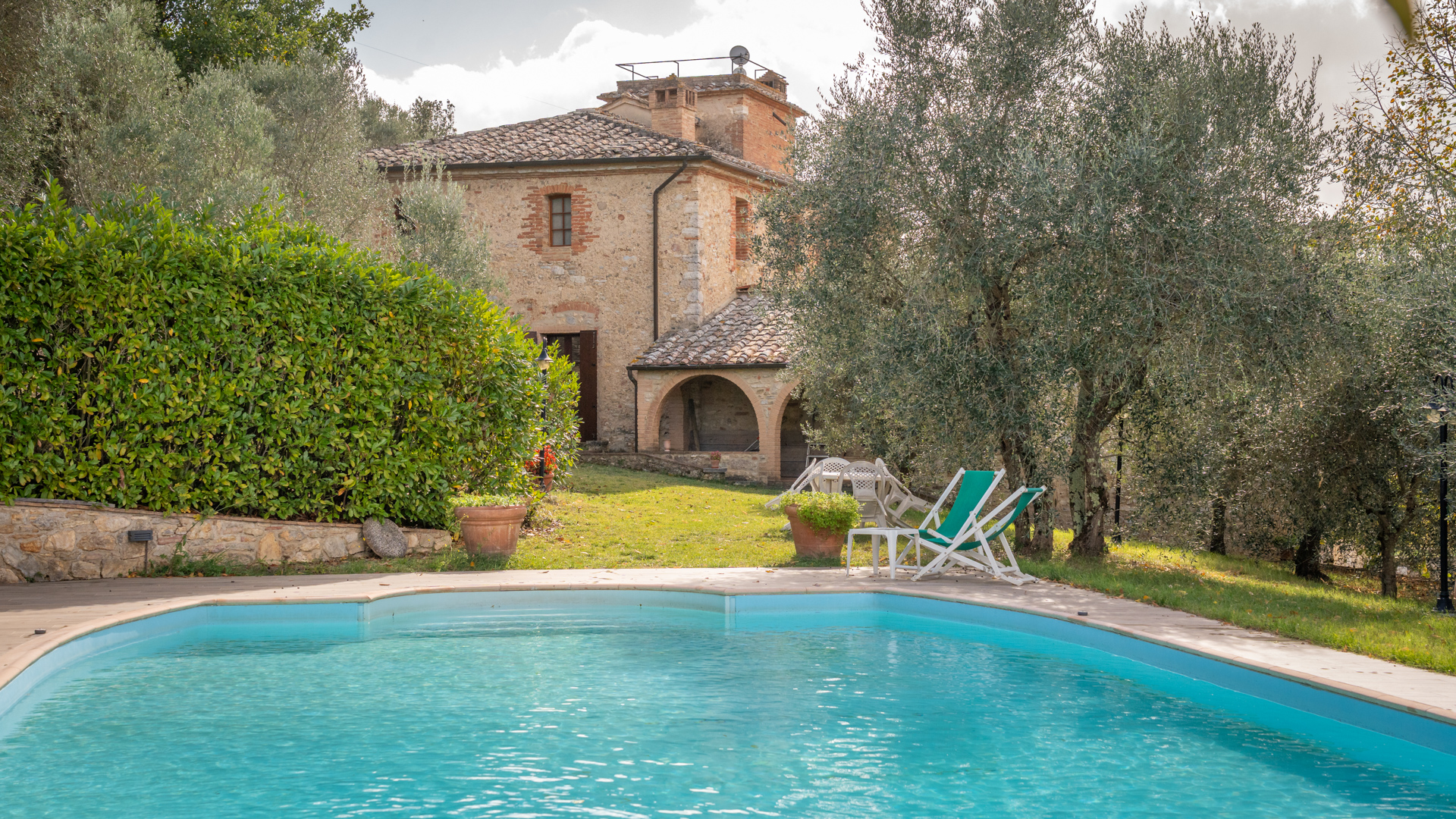 Strategically located, the property offers easy access to the main towns of Tuscany: Siena is about 20 minutes away, Rapolano Terme just 5 minutes, Montalcino 45 minutes, and Florence about one hour.