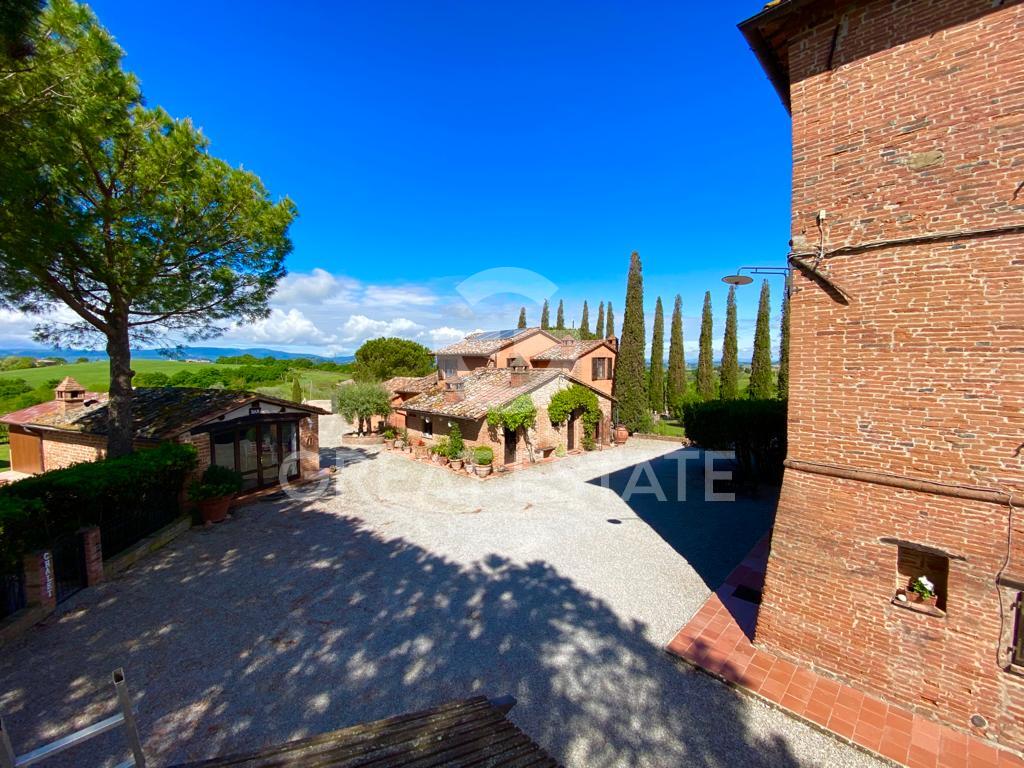 The farmhouse, divided into seven independent apartments, is ideal for a hospitality business, supported by functional outbuildings that facilitate efficient management.