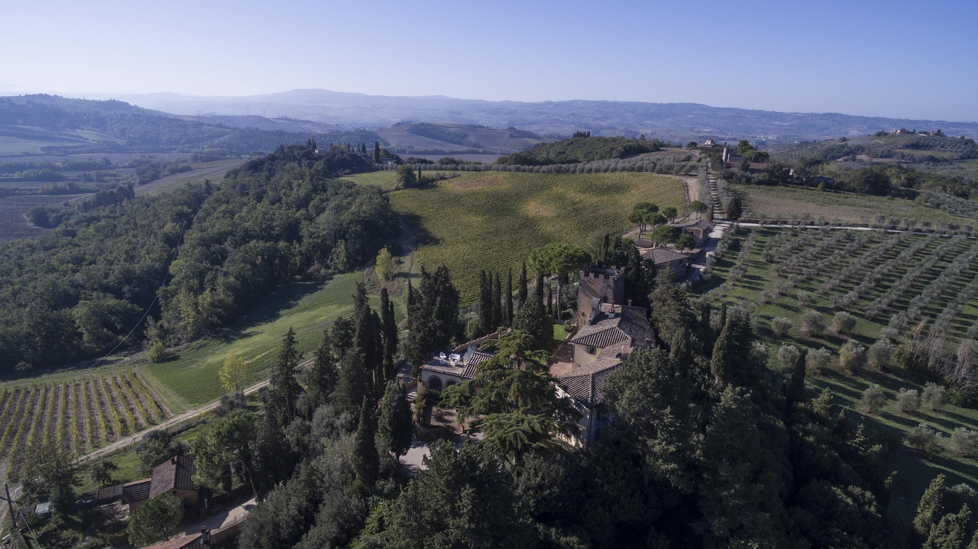 Located near the world renown city of Florence, the estate comes with its own extensive land of 25 acres and it’s one of only few homes in the area with such commanding view over its private land. Set on the highest point of the estate, the two-level mansion affords views of the scenic landscape from almost every angle. The interiors include a spacious living room, a dining area with classic decoration, a well-equipped kitchen, and a terrace overlooking the pool.