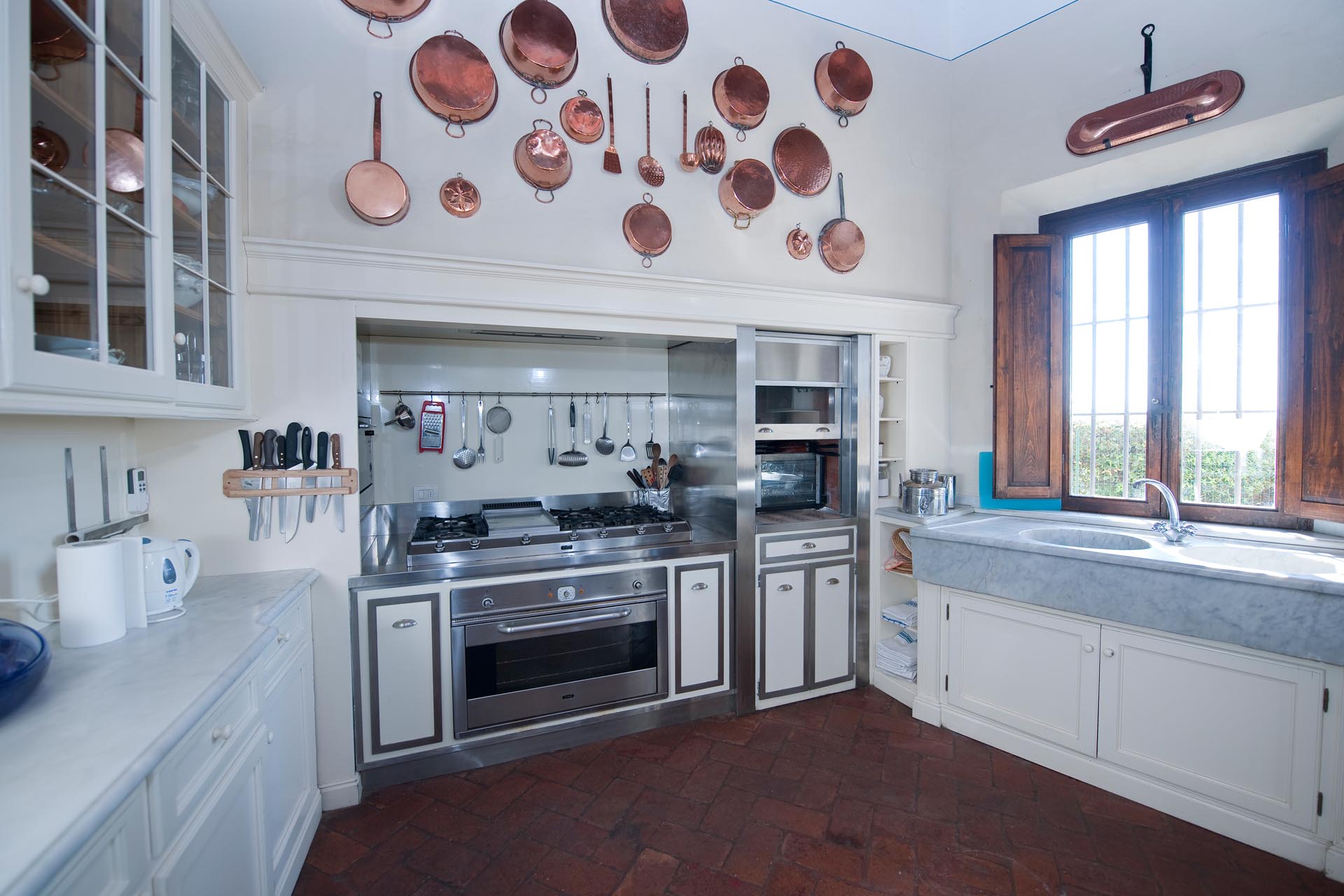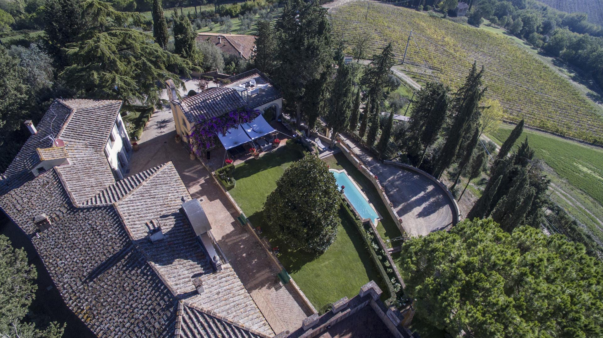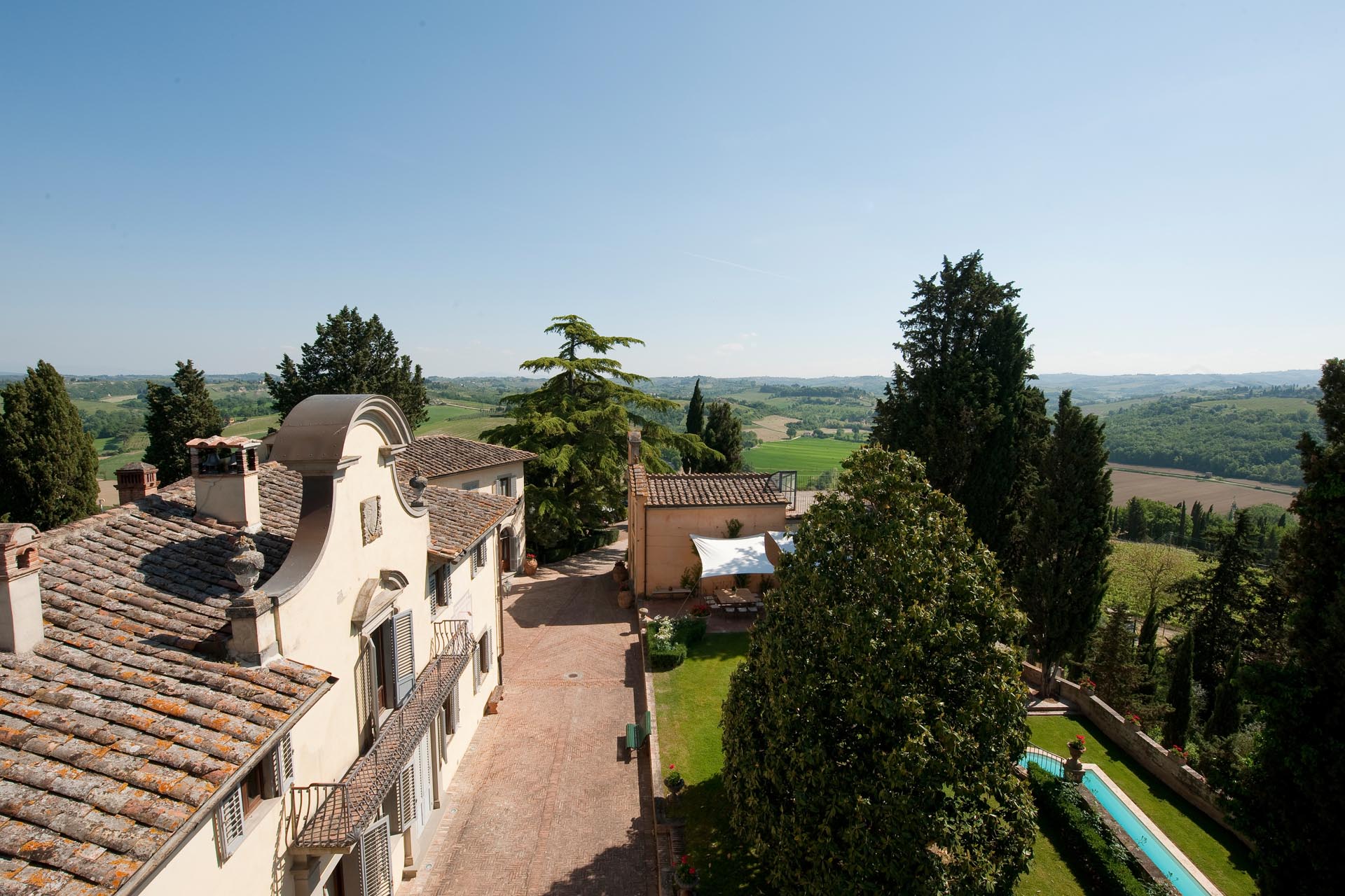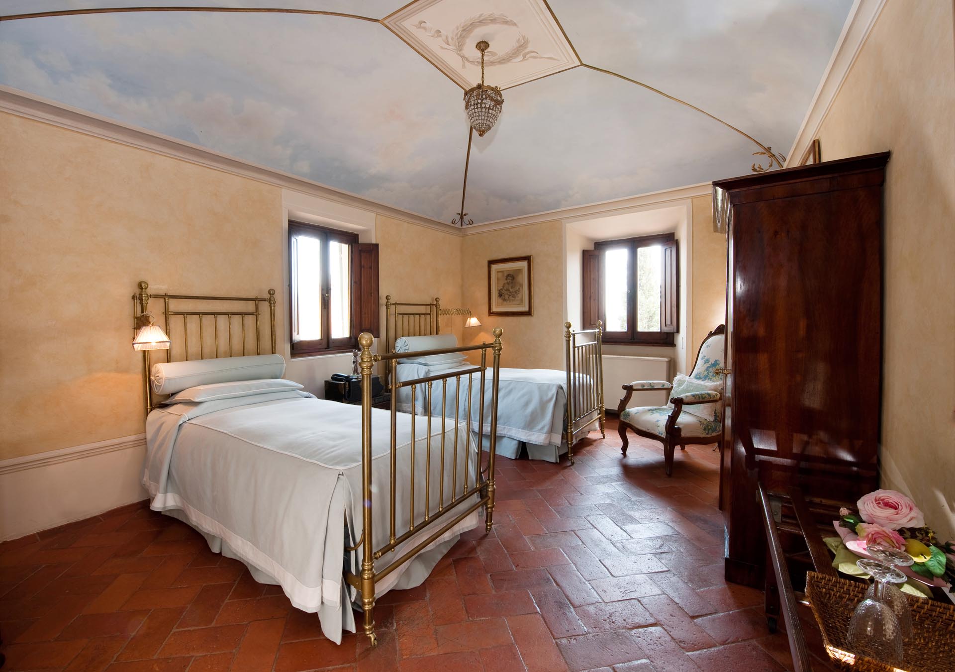 On the sweeping grounds there’s a pool surrounded by a loggia, a solarium and plenty of space for all guests. Hidden away, yet very close to all the top locations of Tuscany, this estate offers six bedrooms decorated in elegant style with colour washed walls in pale coloured shades and trompe l’oeil, custom made fabrics and several bespoke furnishing by local Italian artisans.